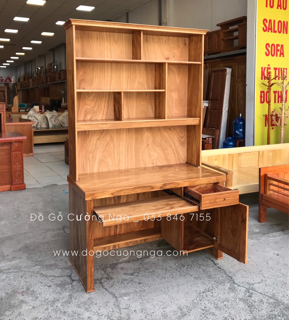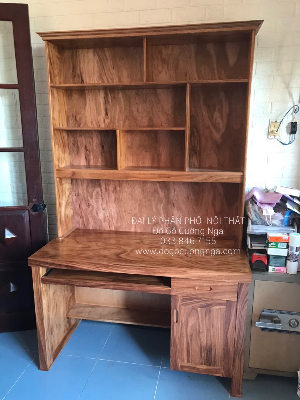 Bàn học gỗ Hương Xám kèm kệ sách đa năng