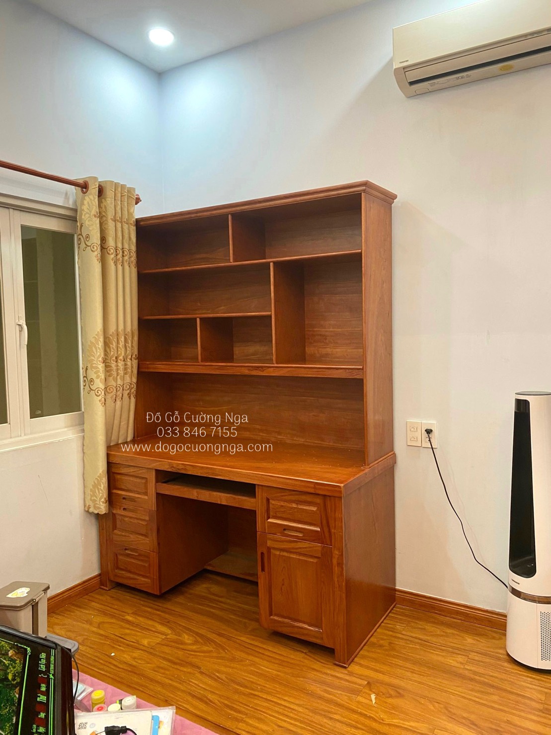 Bàn học liền giá sách gỗ xoan đào