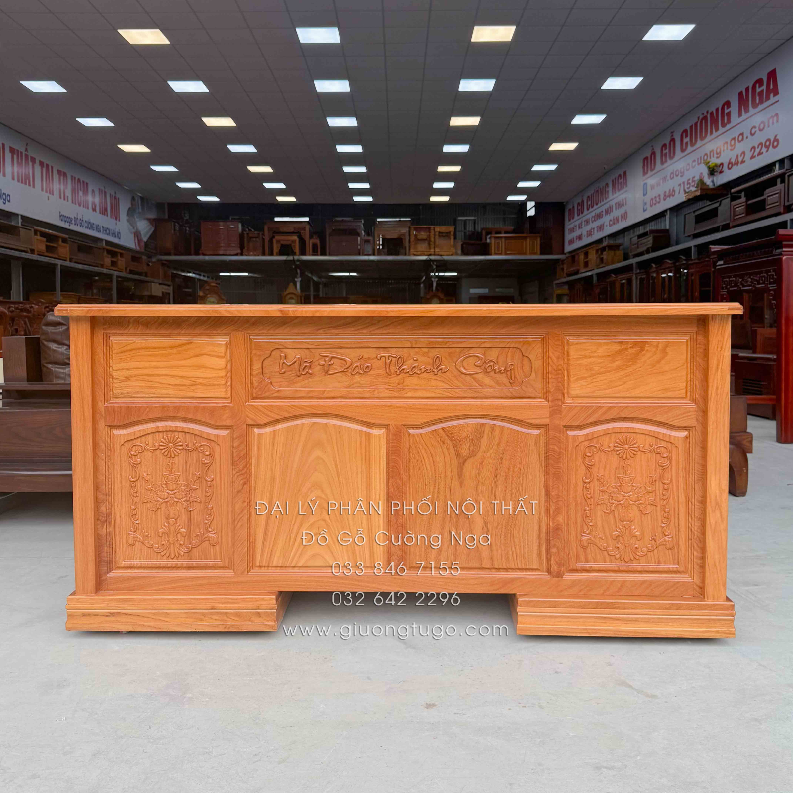 Thông tin chi tiết Bàn Làm Việc Giám Đốc Gỗ Gõ Đỏ 1m6 Chạm Mã Đáo Thành Công