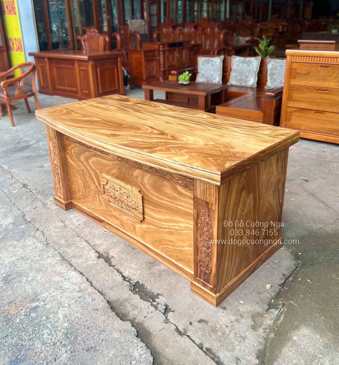 Bàn gỗ Hương Xám được thiết kế với 3 ngăn tủ rộng 2 bên, hộc tủ kéo tạo diện tích chứa đồ thoải mái cho người dùng, khung tủ chắc chắn không họa tiết cầu kỳ chủ yếu tôn lên vẻ đẹp của gỗ Hương Xám tự nhiên. Các sản phẩm bàn làm việc gỗ Hương Xám thường có nhiều đặc điểm nổi bật và đặc biệt bởi mùi hương nhẹ nhàng, dễ chịu không hề bị mất đi theo thời gian và những đường vân gỗ mềm mại, uyển chuyển vô cùng tuyệt đẹp. Do vậy những sản phẩm ấy luôn dễ dàng chinh phục được rất nhiều khách hàng kể cả những người khó tính nhất.