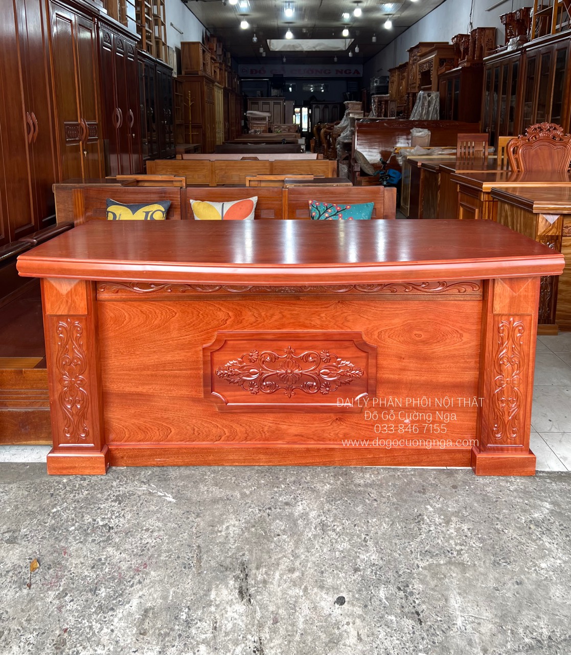 Bàn làm việc xoan đào mẫu hoa dây với kích thước rộng rãi phù hợp cho các không gian làm việc. Thiết kế đơn giản nhưng không kém phần hiện đại, kích thước của mẫu bàn làm việc này đã được chúng tôi đo đạc căn chỉnh kỹ lưỡng theo tiêu chuẩn, nhìn tổng thể sản phẩm vô cùng chỉnh chu và sang trọng.