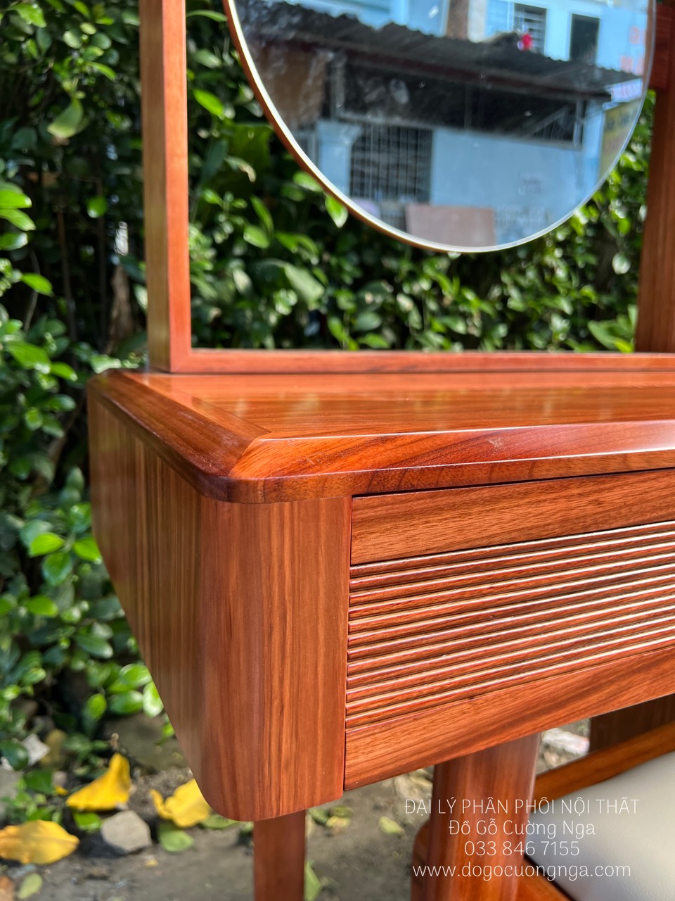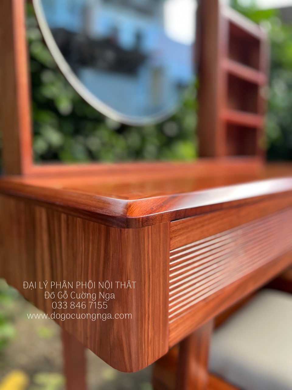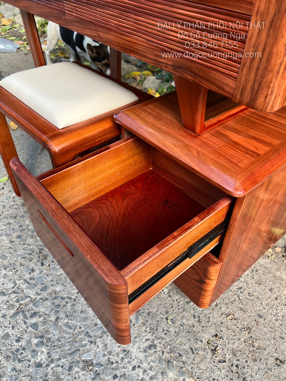 Chi tiết bàn trang điểm gỗ Cẩm Vân hiện đại