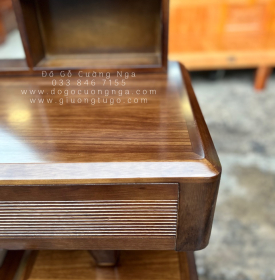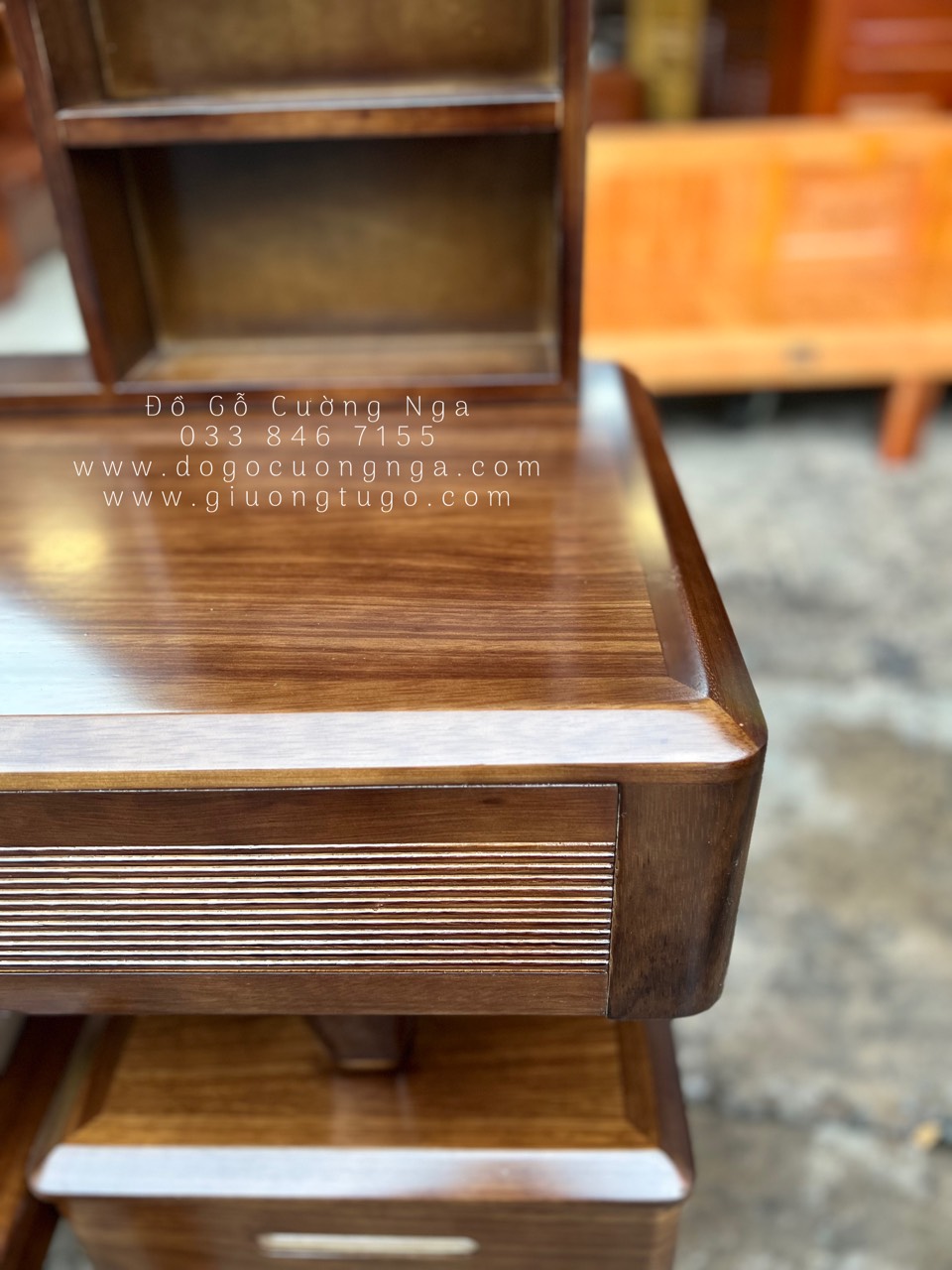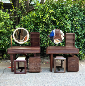 Bàn phấn gỗ Hương Xám mang đậm phong cách độc đáo. Kiểu dáng bàn trang điểm hiện đại gồm phần mặt bàn chính để đồ trang điểm