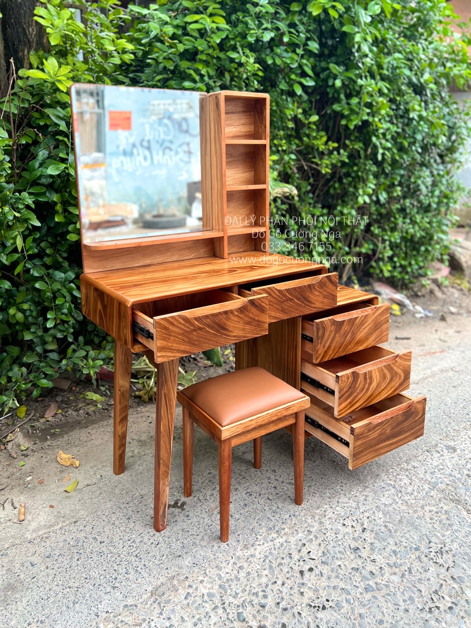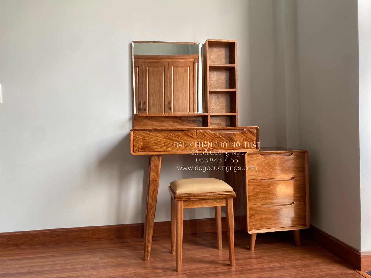 Video bàn trang điểm gỗ hương xám