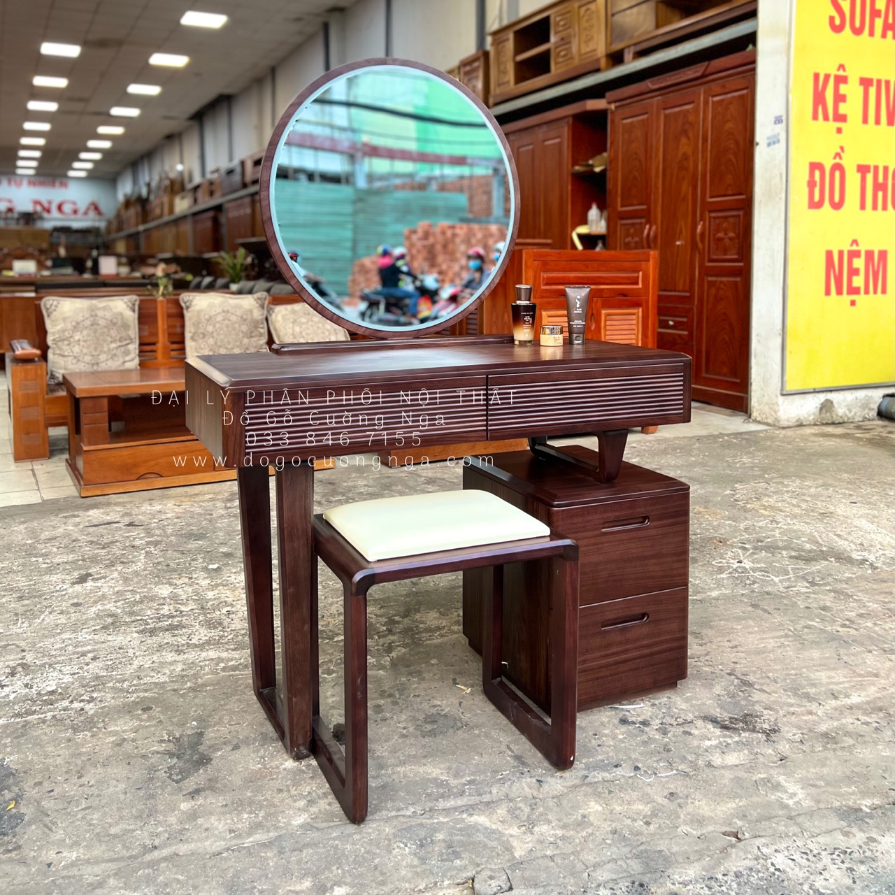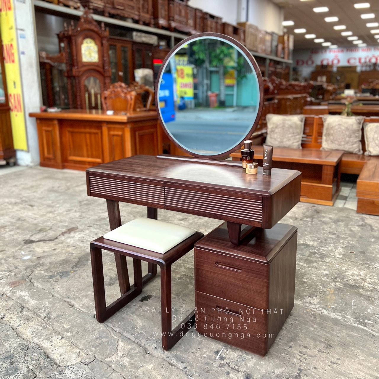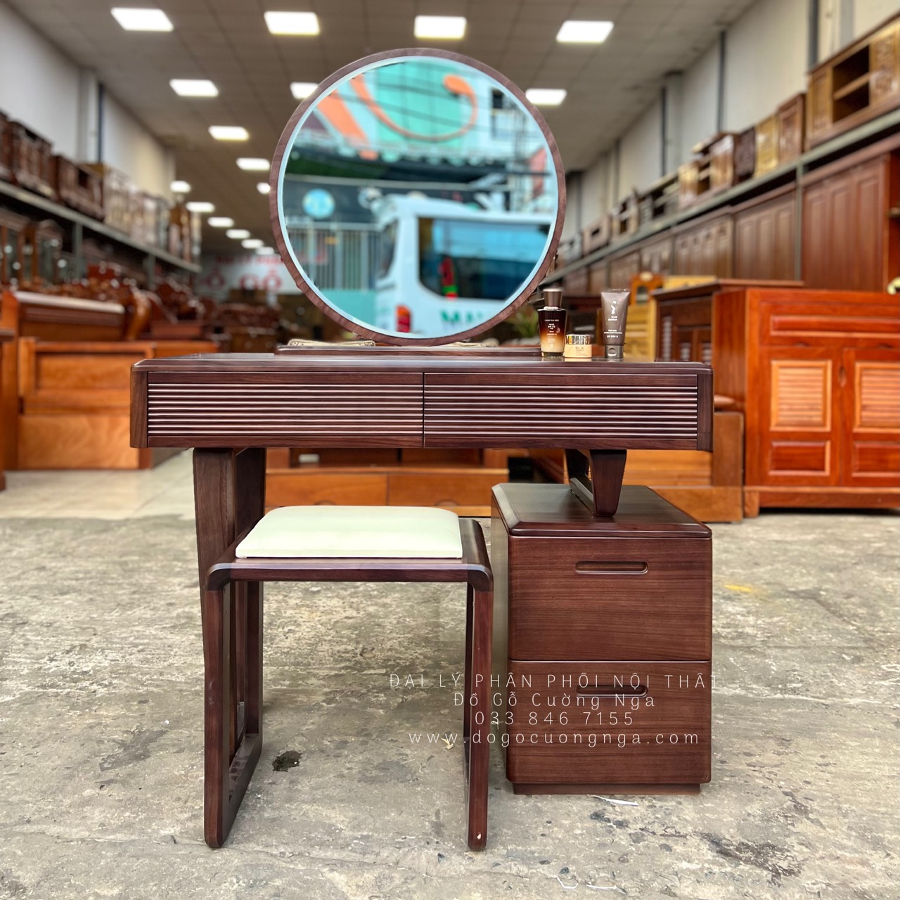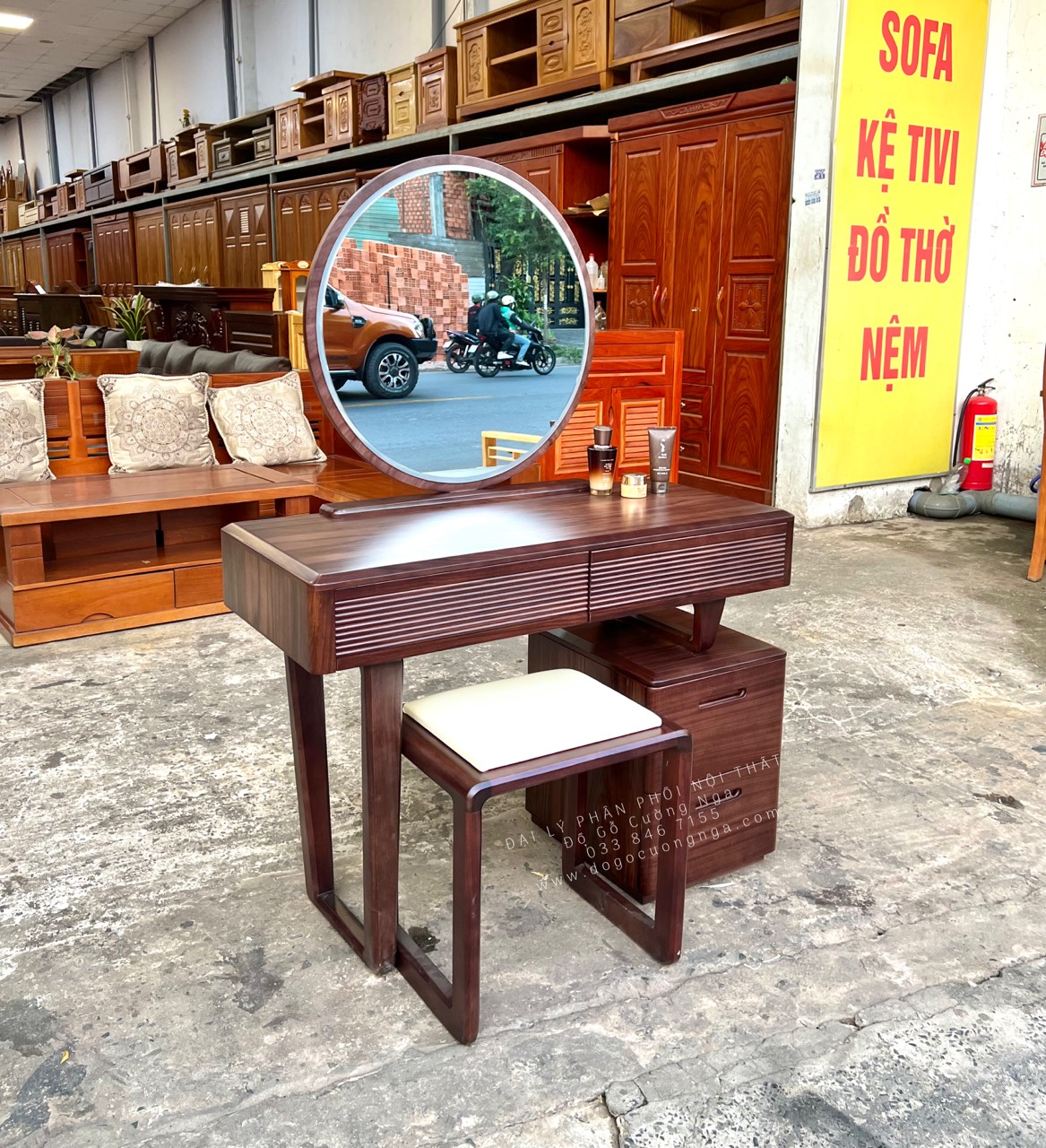 Bàn Phấn Trang Điểm Gỗ Óc Chó 1m Gương Tròn