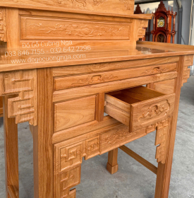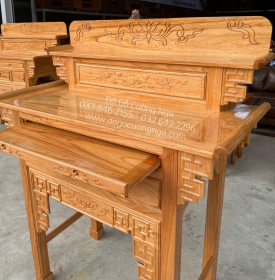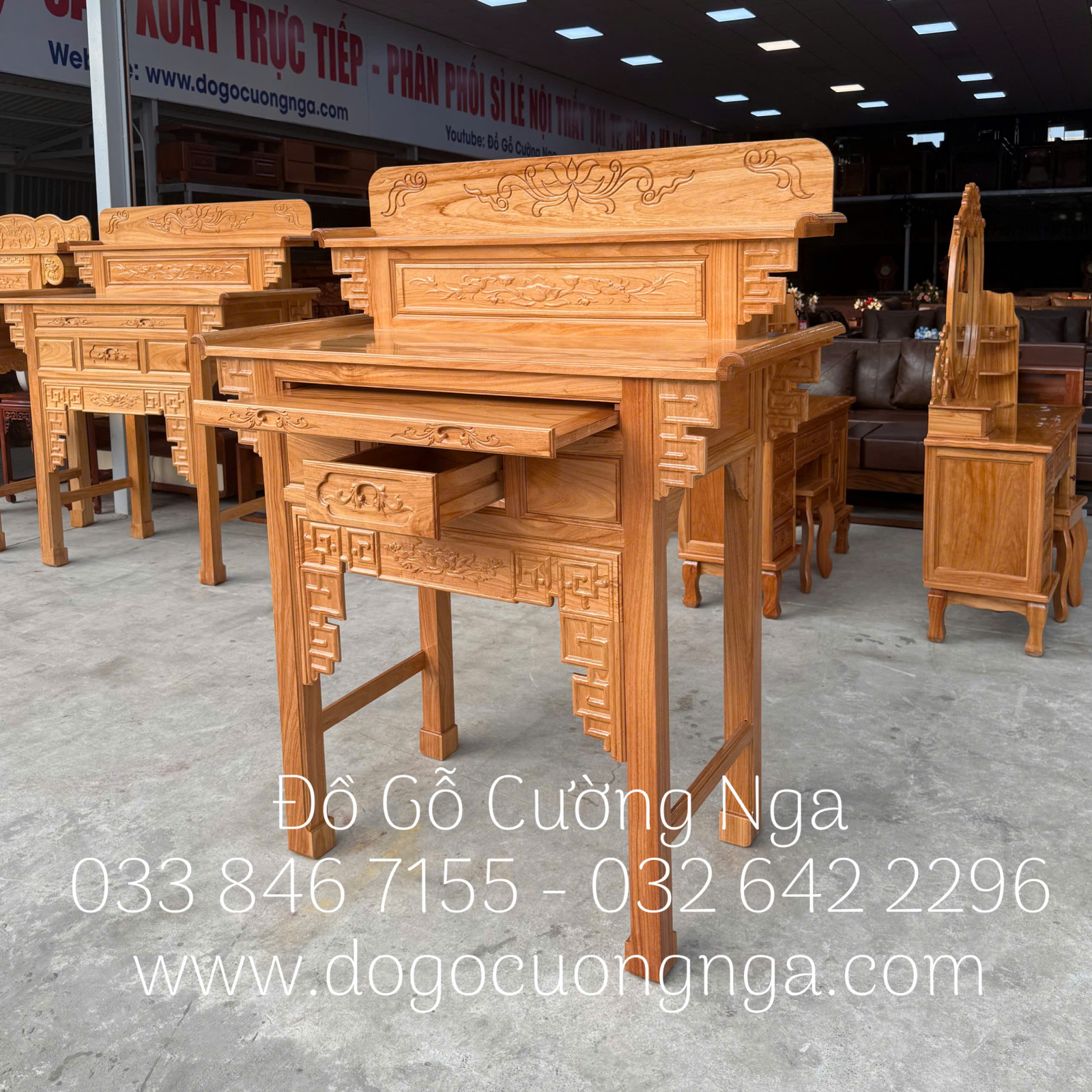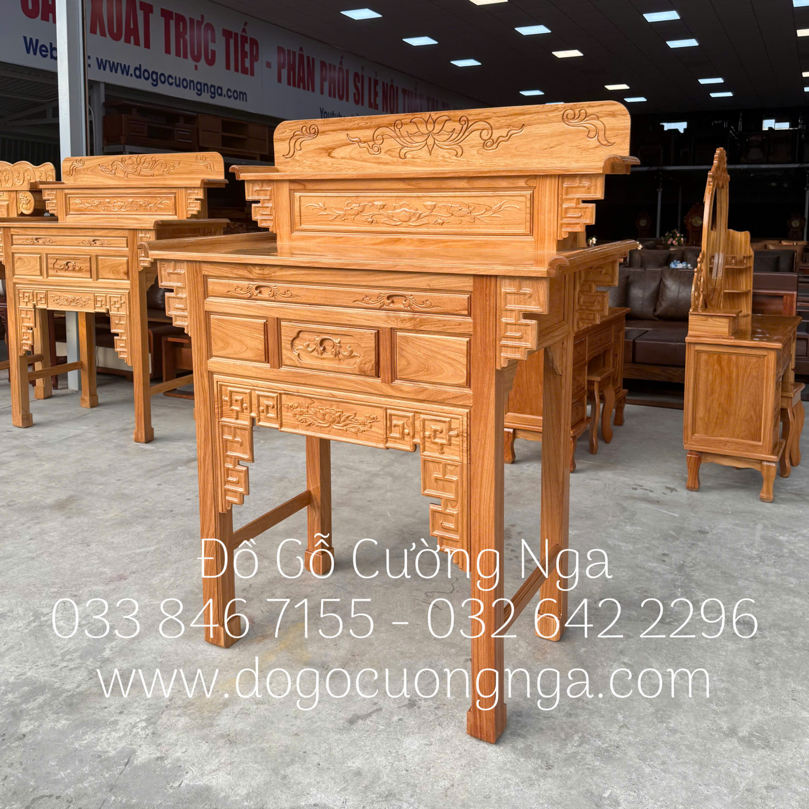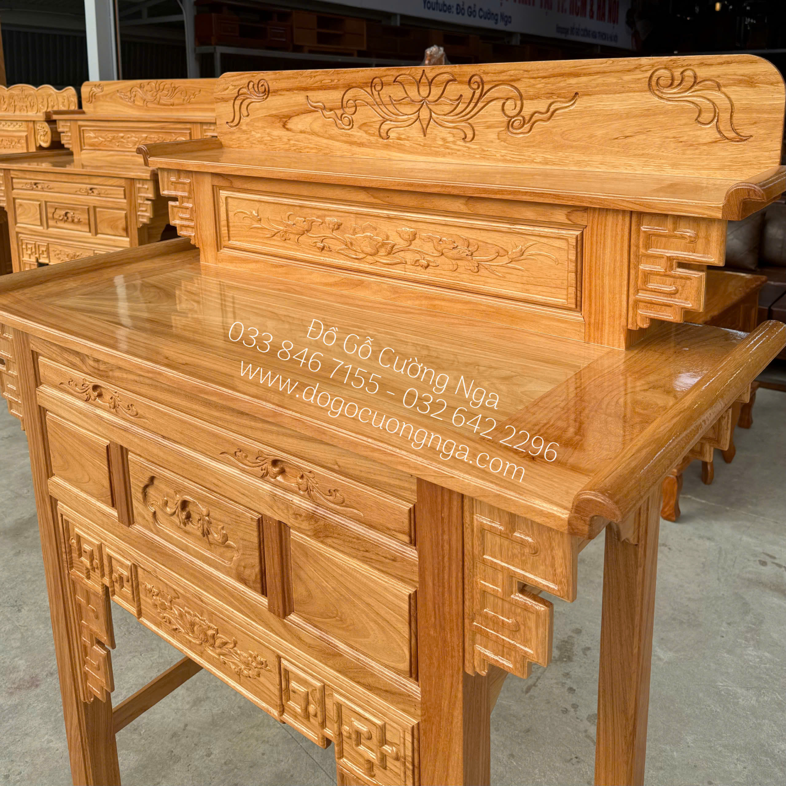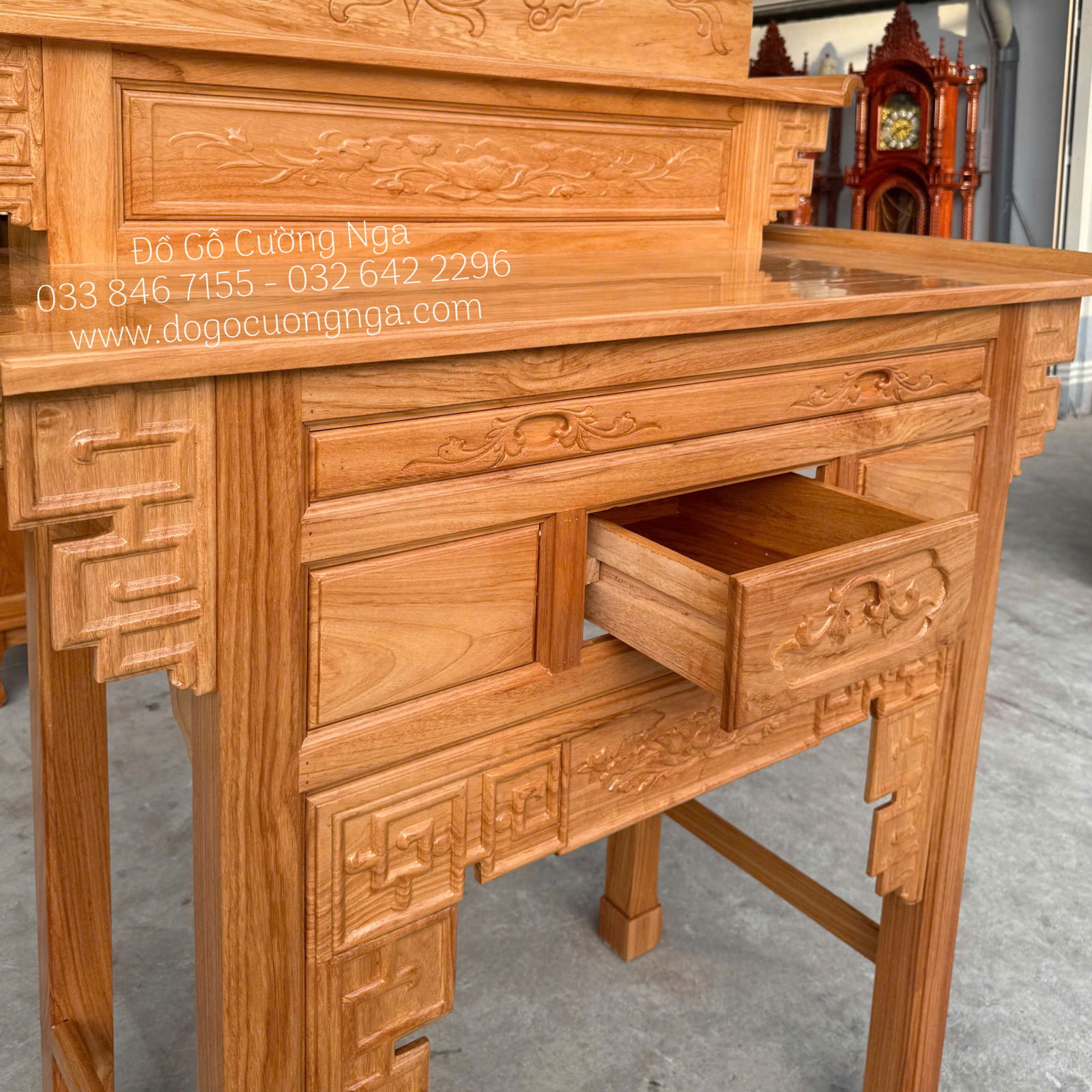 Bàn Thờ 2 Tầng Gỗ Gõ Đỏ 1m27 Chạm Khắc Hoa Văn Cao Cấp