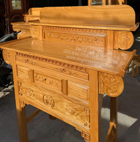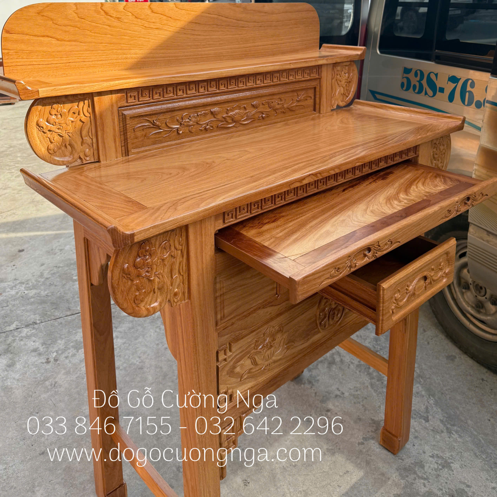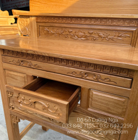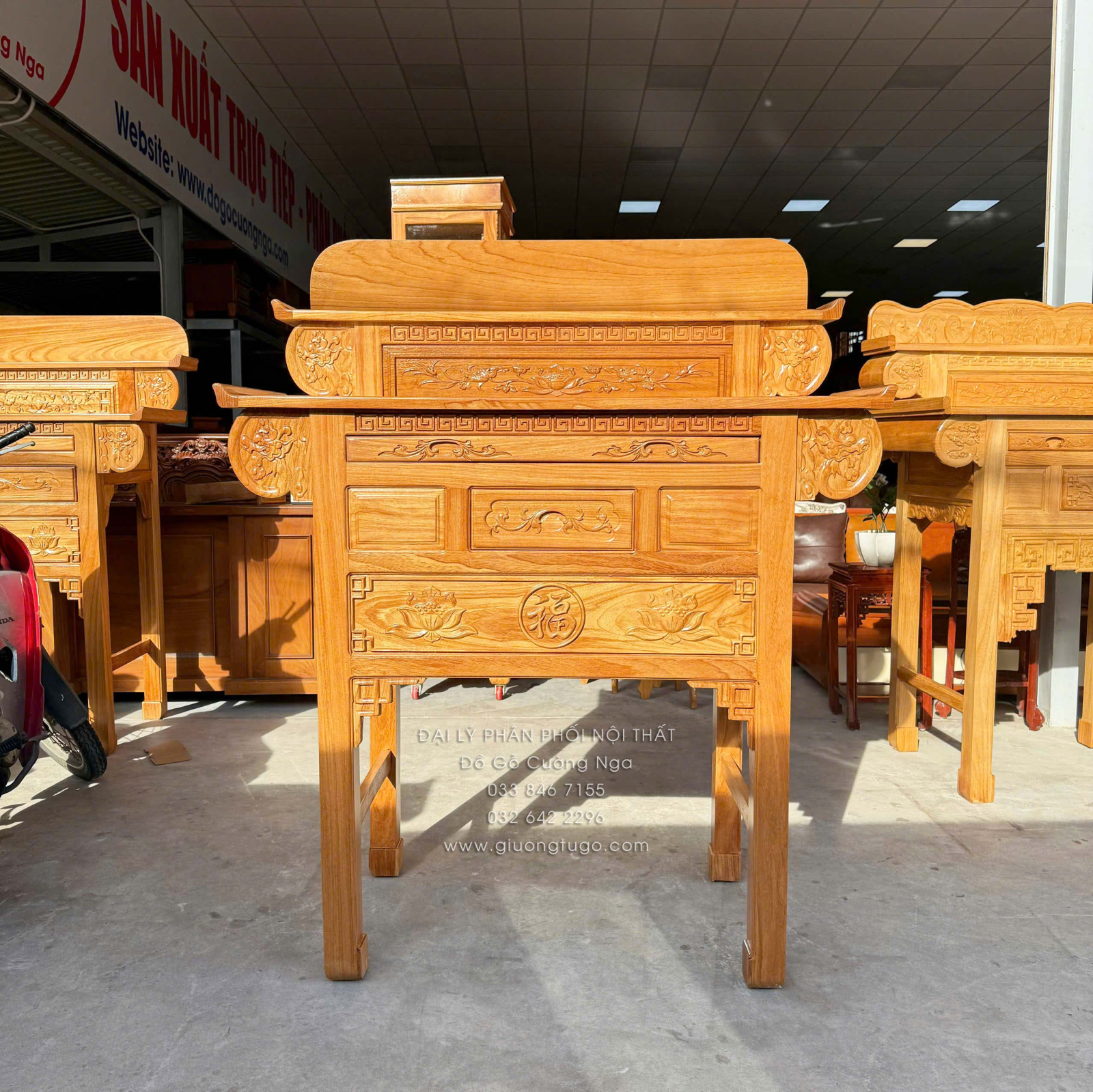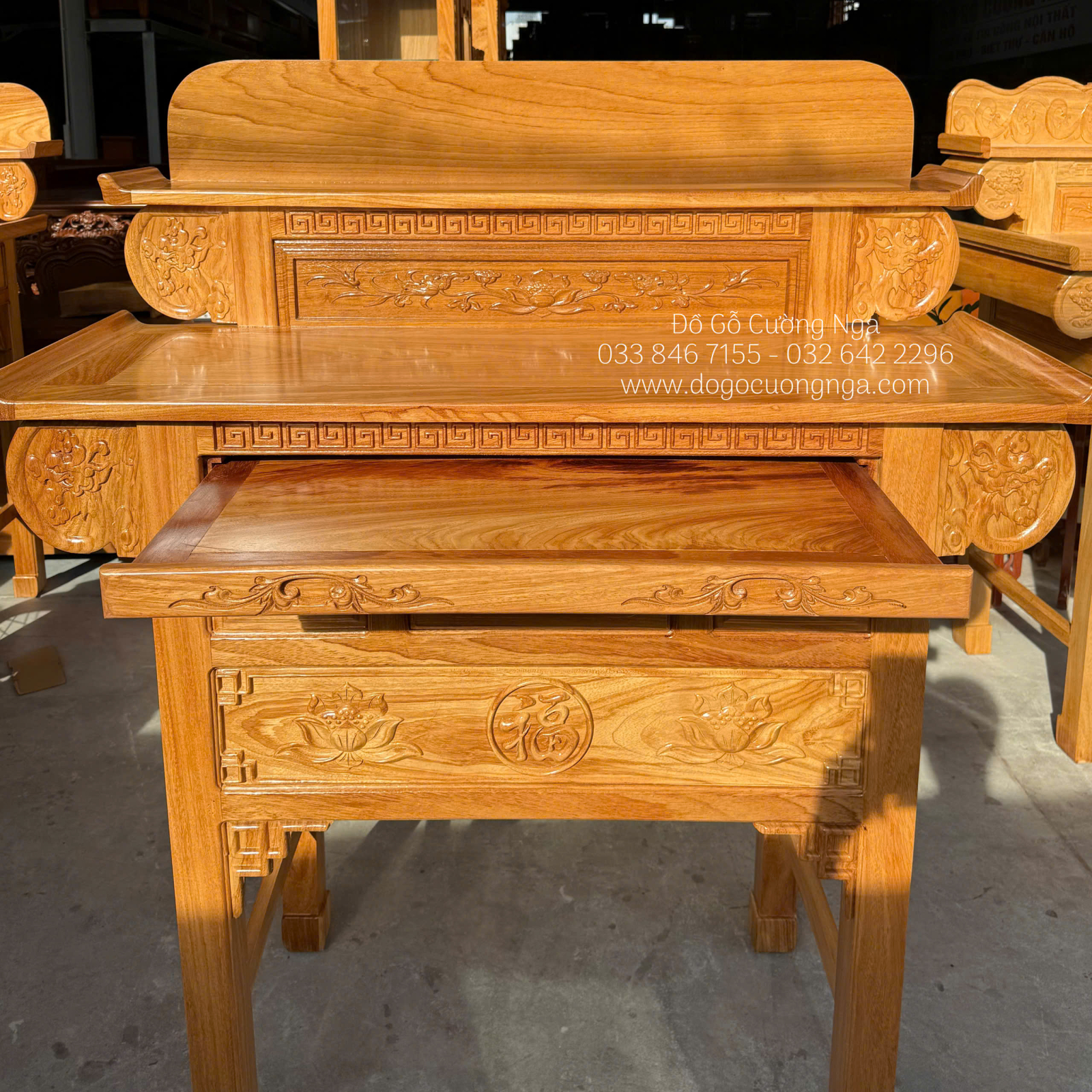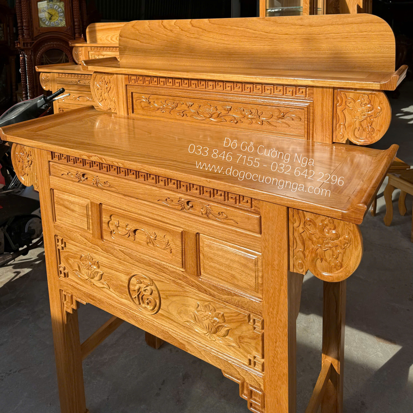 Bàn Thờ 2 Tầng Gỗ Gõ Đỏ 1m27 Chạm Sen - Chữ Phúc