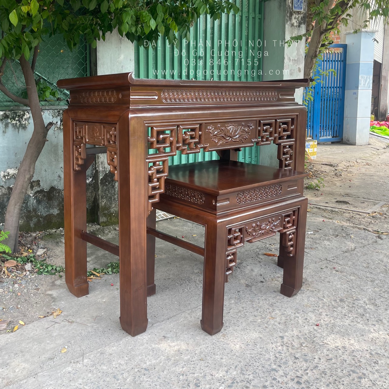 Bàn thờ gỗ gõ đỏ 1m53 trạm sen