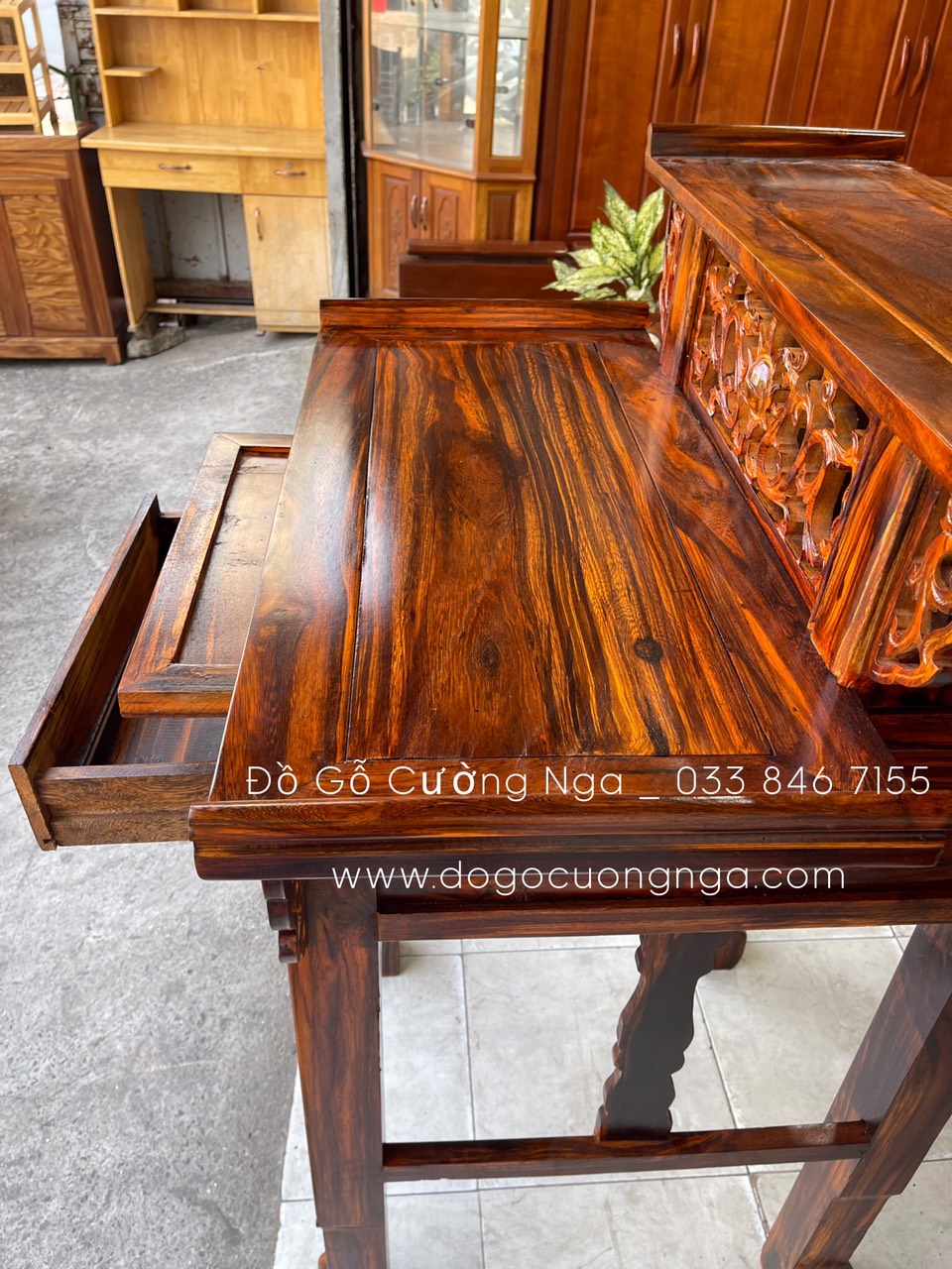 Chuyên cung cấp các sản phẩm từ gỗ, đặc biệt là sản phẩm bàn thờ gỗ tự nhiên, với nhiều chất liệu như gỗ sồi, gỗ muồng, gỗ gõ đỏ,... Với nhiều mẫu mã đa dạng, bên cạnh đó thiết kế theo yêu cầu các mẫu sản phẩm để phù hợp với không gian sống của gia chủ. Màu sắc bắt mắt, lựa chọn tùy theo tone màu mà gia chủ muốn để phù hợp với phong thủy và phù hợp với nội thất chung của gia đình.