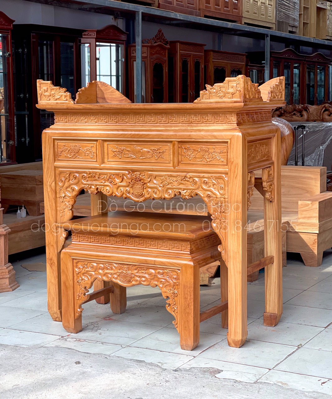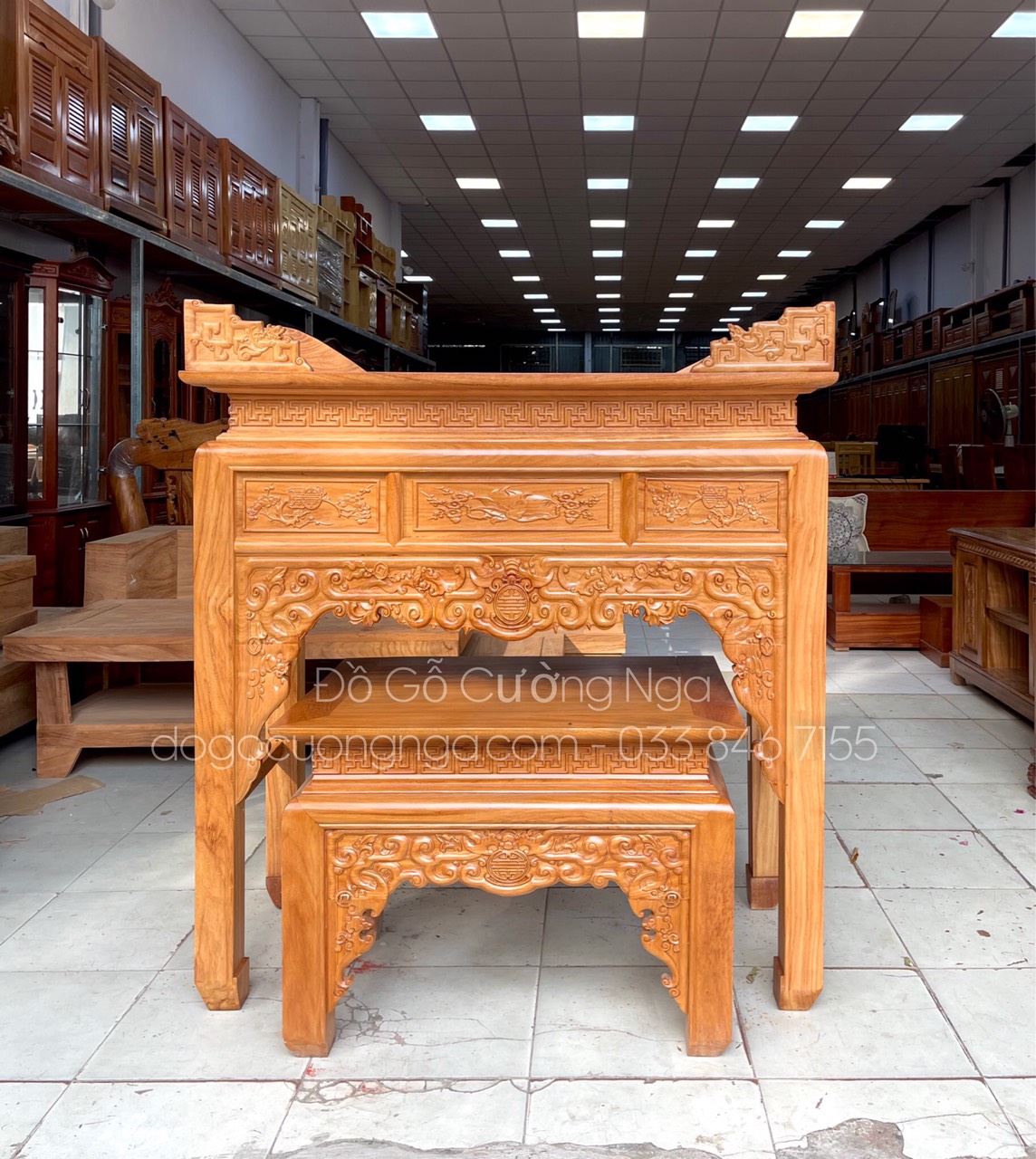 Chi tiết bàn thờ gỗ gõ đỏ 1m27 cao cấp