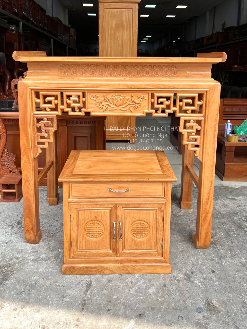 Bàn Thờ Gia Tiên Gỗ Gõ Đỏ 1m27 Trạm Sen 2 Chi Tiết BT 1.02