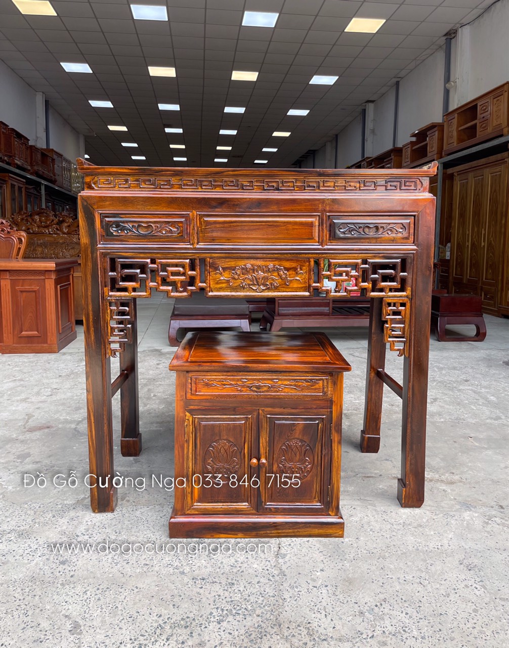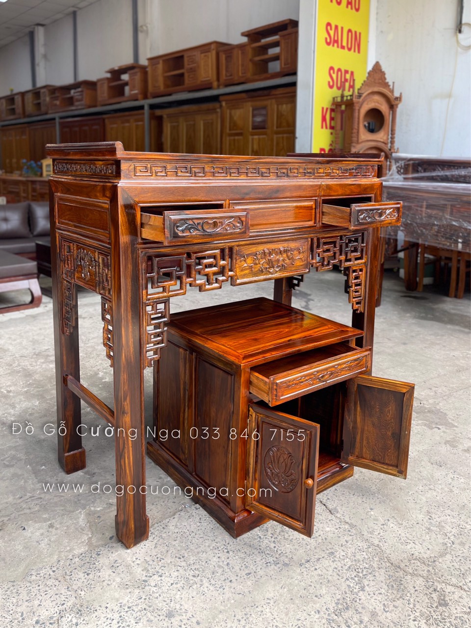 Bàn thờ gia tiên gỗ muồng - bàn thờ cặp