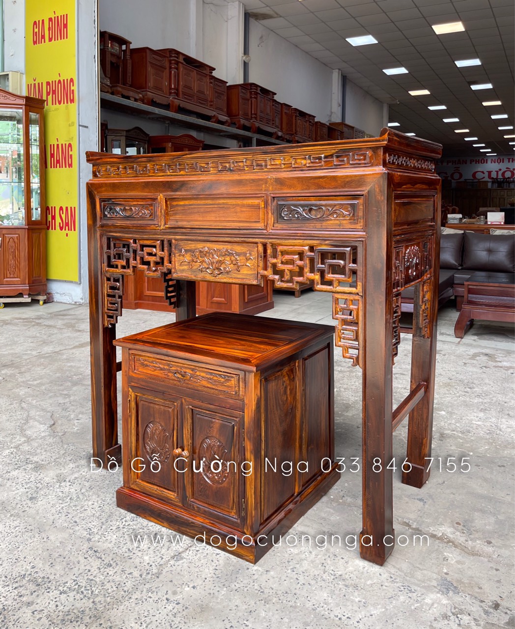 * Bàn án : Dài 1m07 x Rộng 60 cm x Cao 1m27