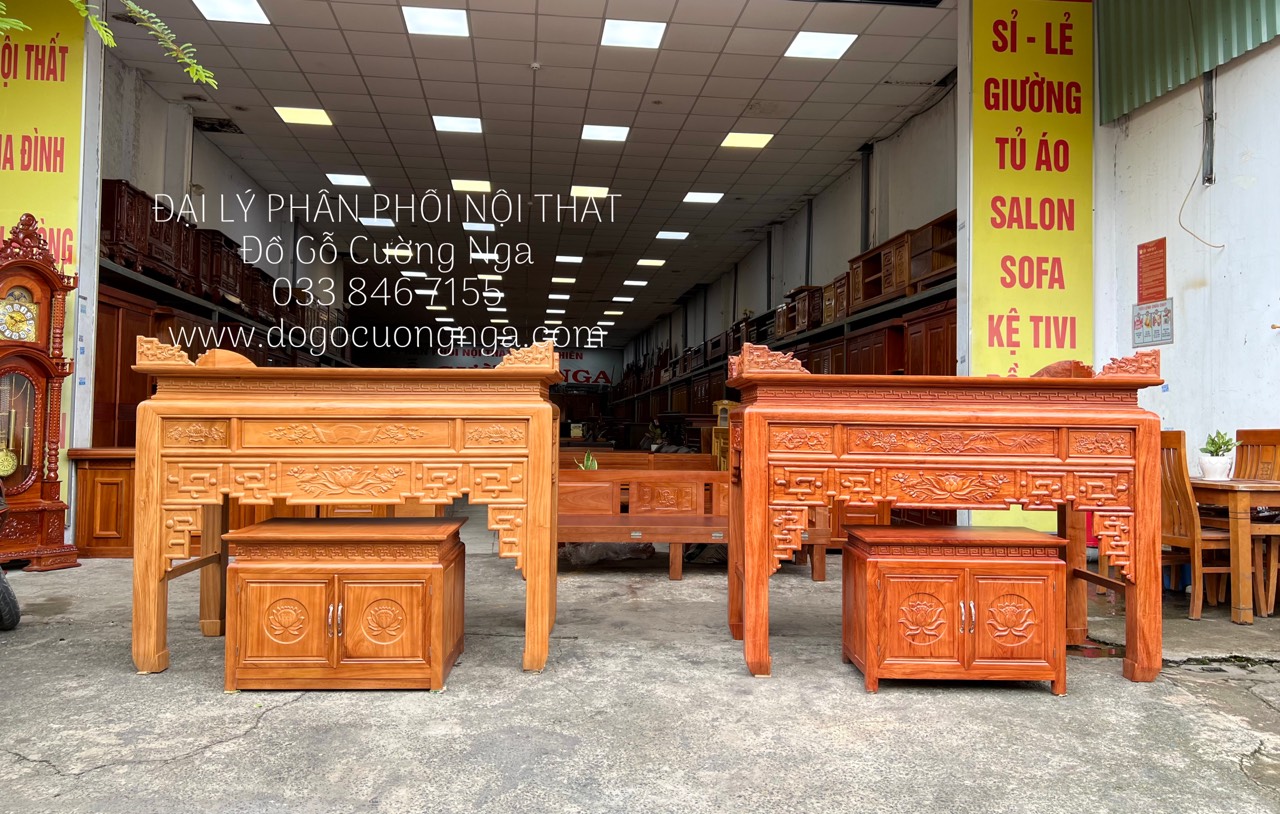 Bàn Thờ Gỗ Gõ Đỏ 1m75 Kèm Bàn Cơm Đẹp Chất Lượng