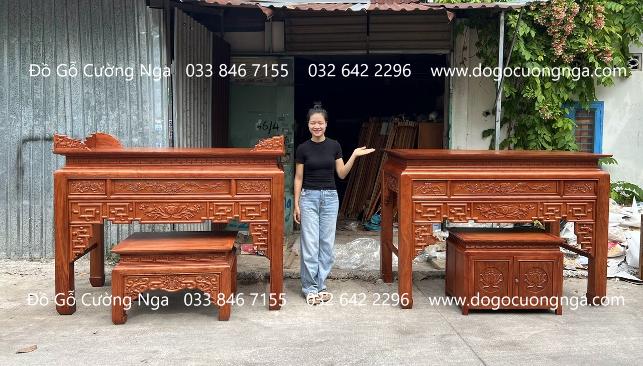 Bàn thờ gỗ tự nhiên cao cấp 1m75 kèm tủ táp
