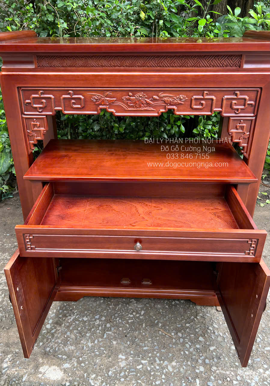 Bàn thờ gỗ xoan đào hiện đại 1m07 trạm sen