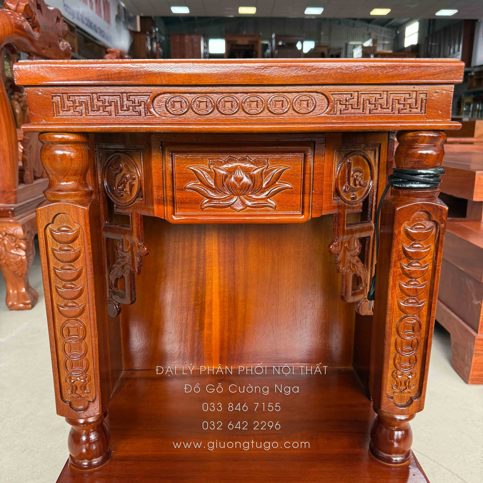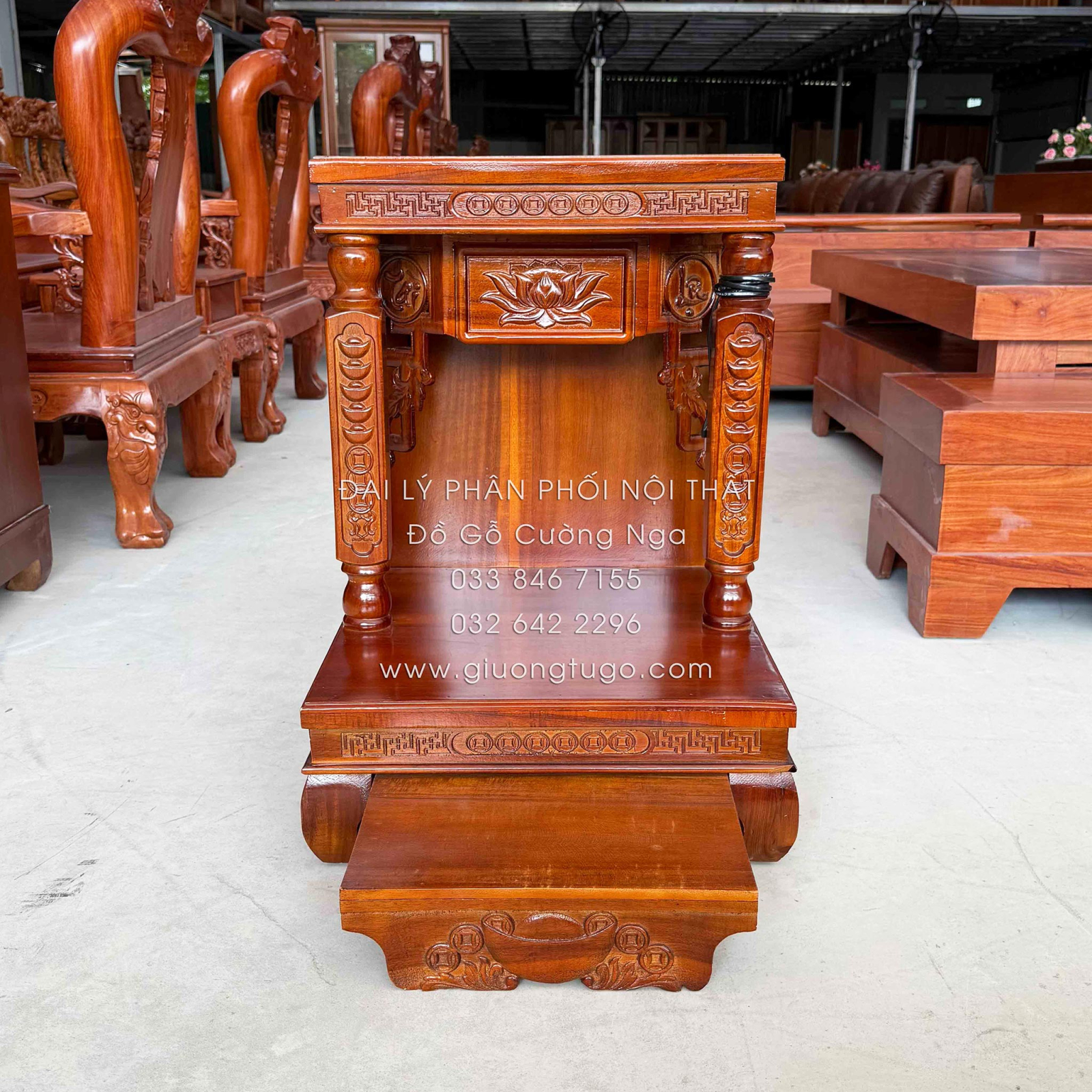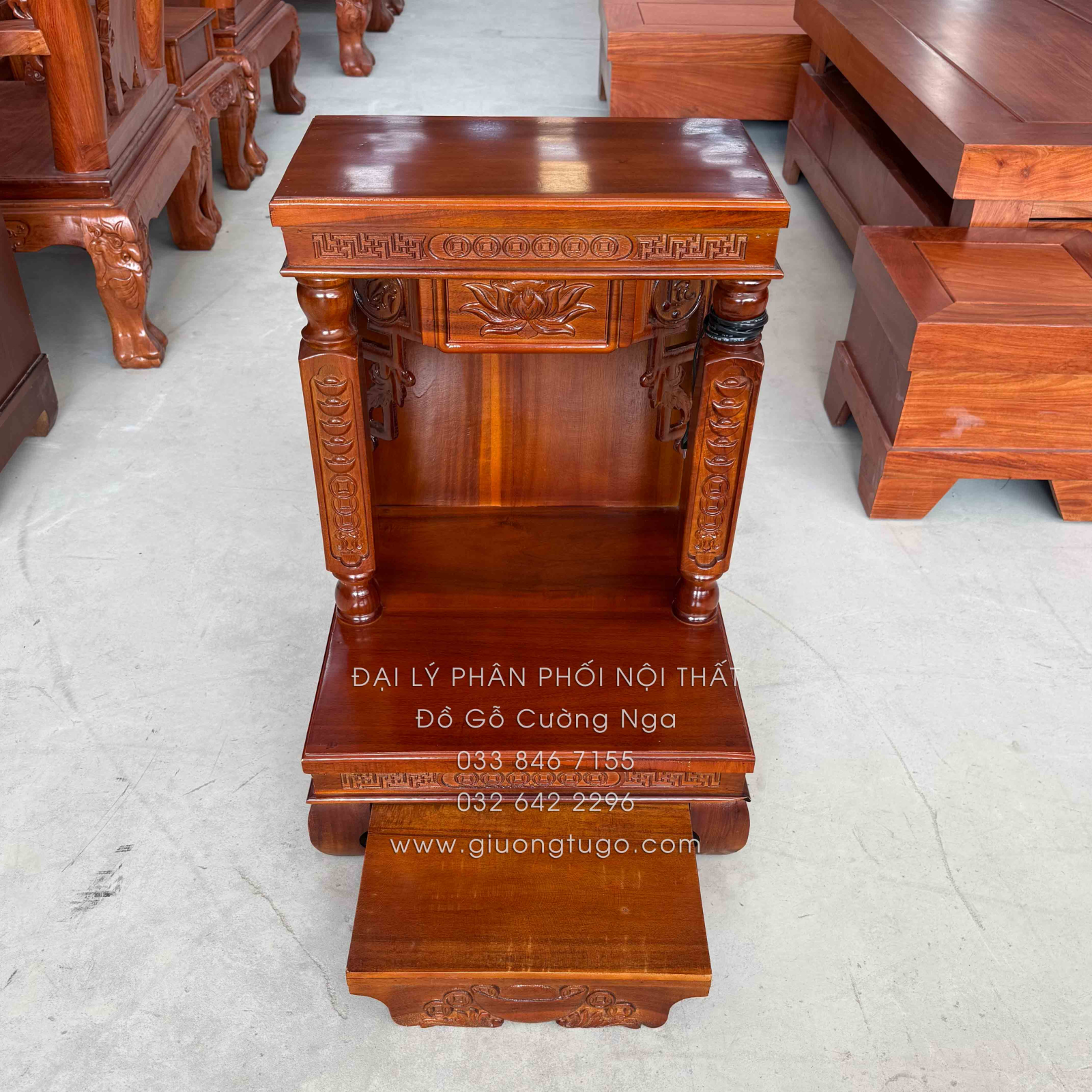 Bàn Thờ Ông Địa Gỗ Tràm Chạm Sen Hiện Đại 48cm
