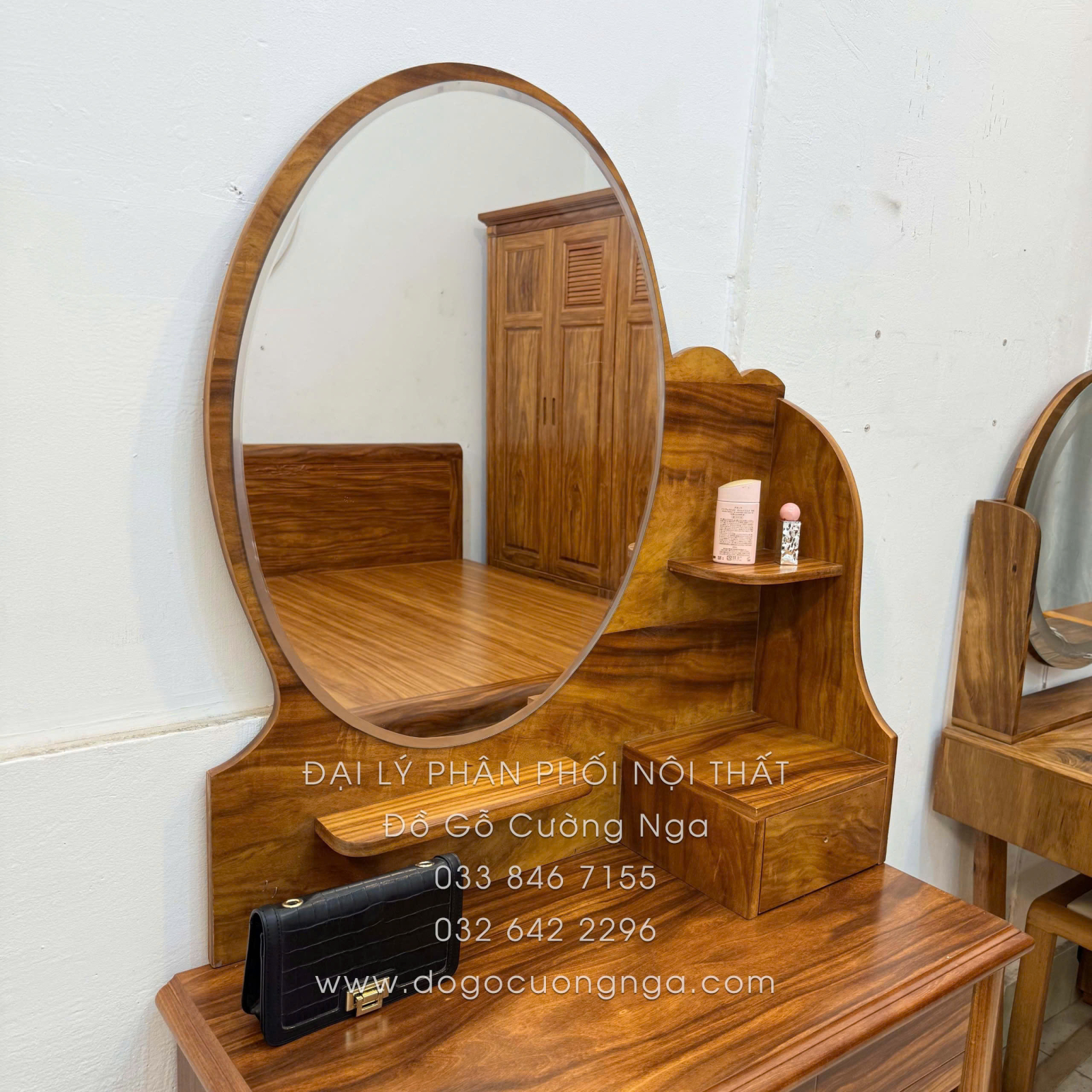 Thông tin chi tiết Bàn Trang Điểm Gỗ Cẩm Vân 85cm Gương Hộp Quý Phái