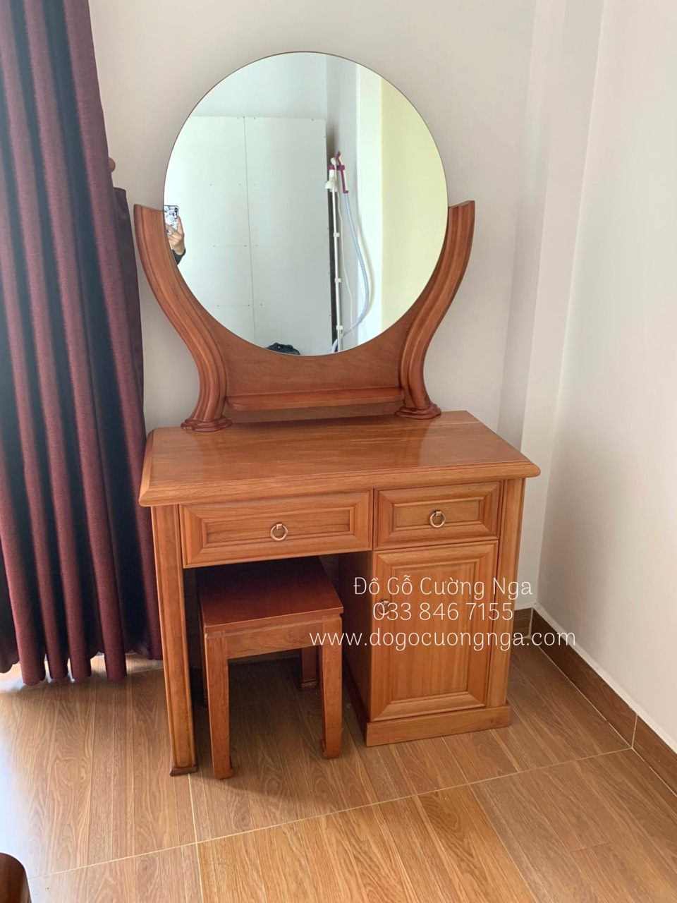 Bàn Trang Điểm Gỗ Gõ Đỏ 80cm Gương Tròn Giá Rẻ TĐ 011