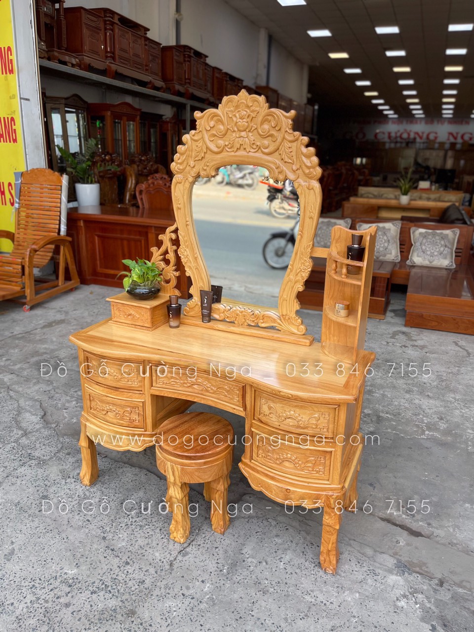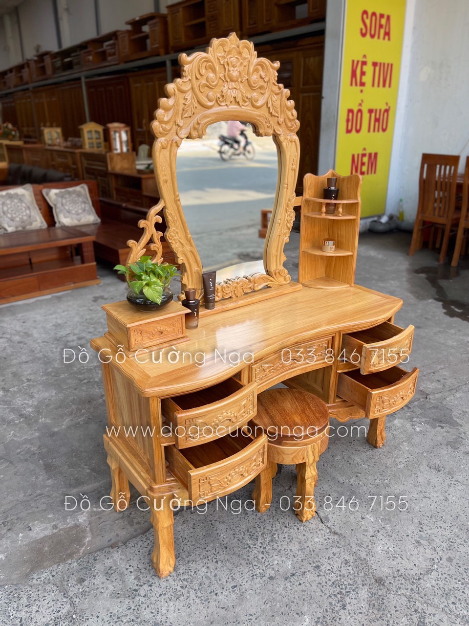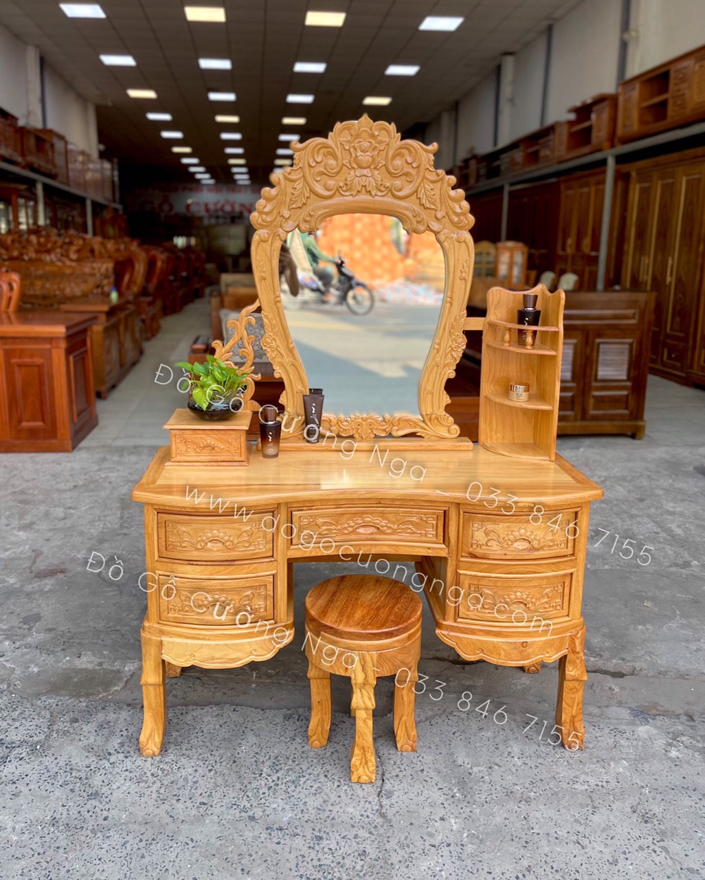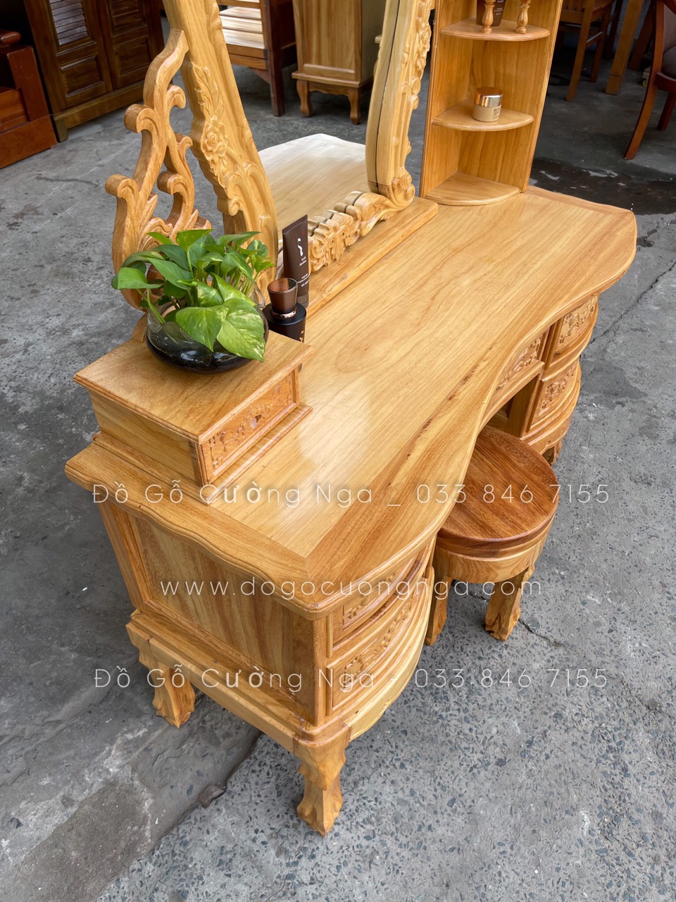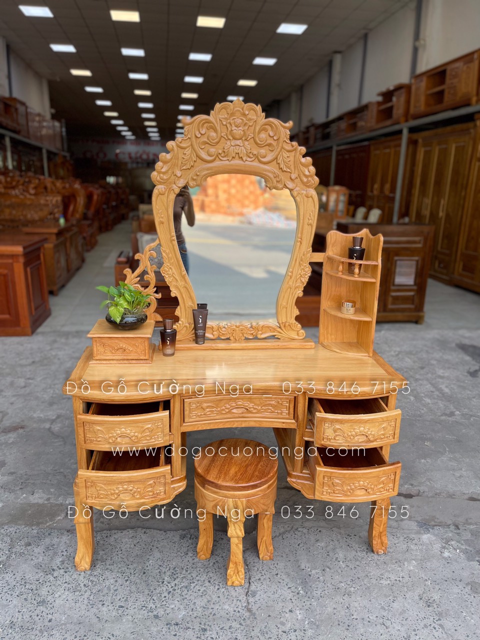Video thực tế mẫu bàn trang điểm gỗ gõ đỏ