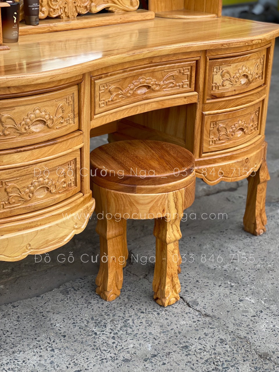 Bàn Trang Điểm Gỗ Gõ Đỏ Cao Cấp 1m1 Mặt Cong TĐ 06