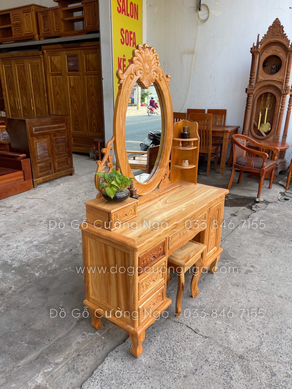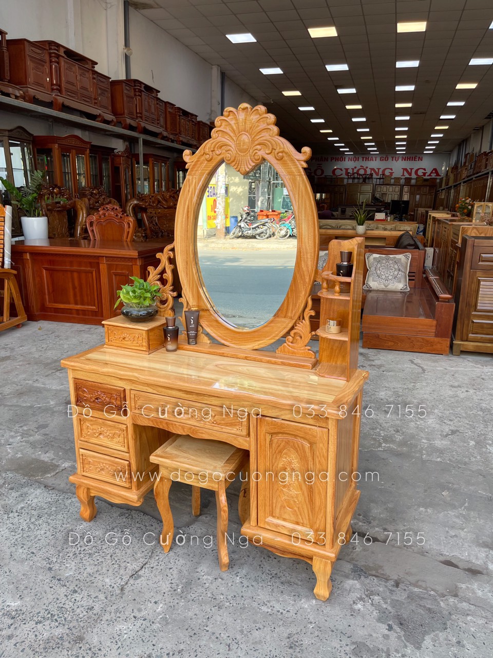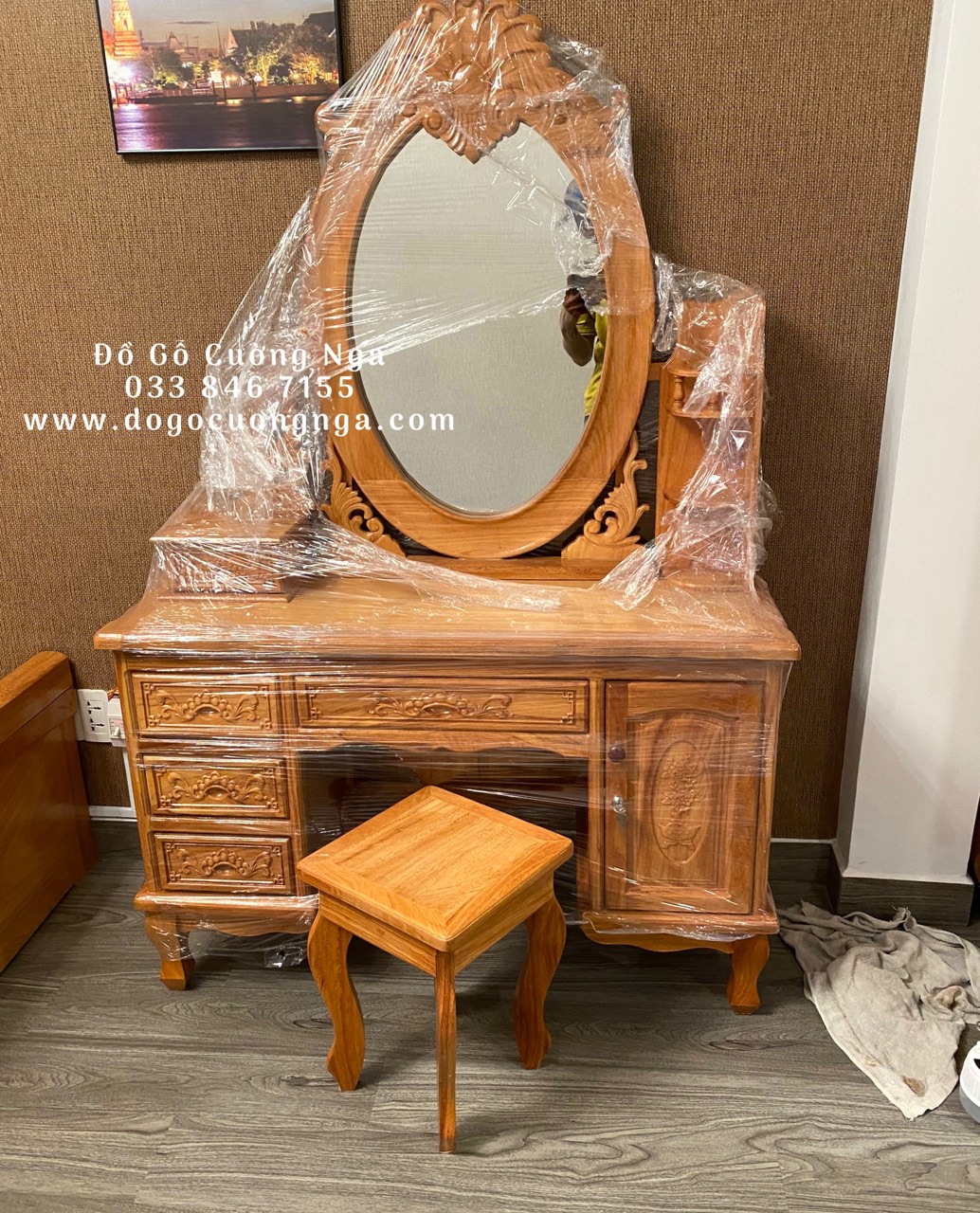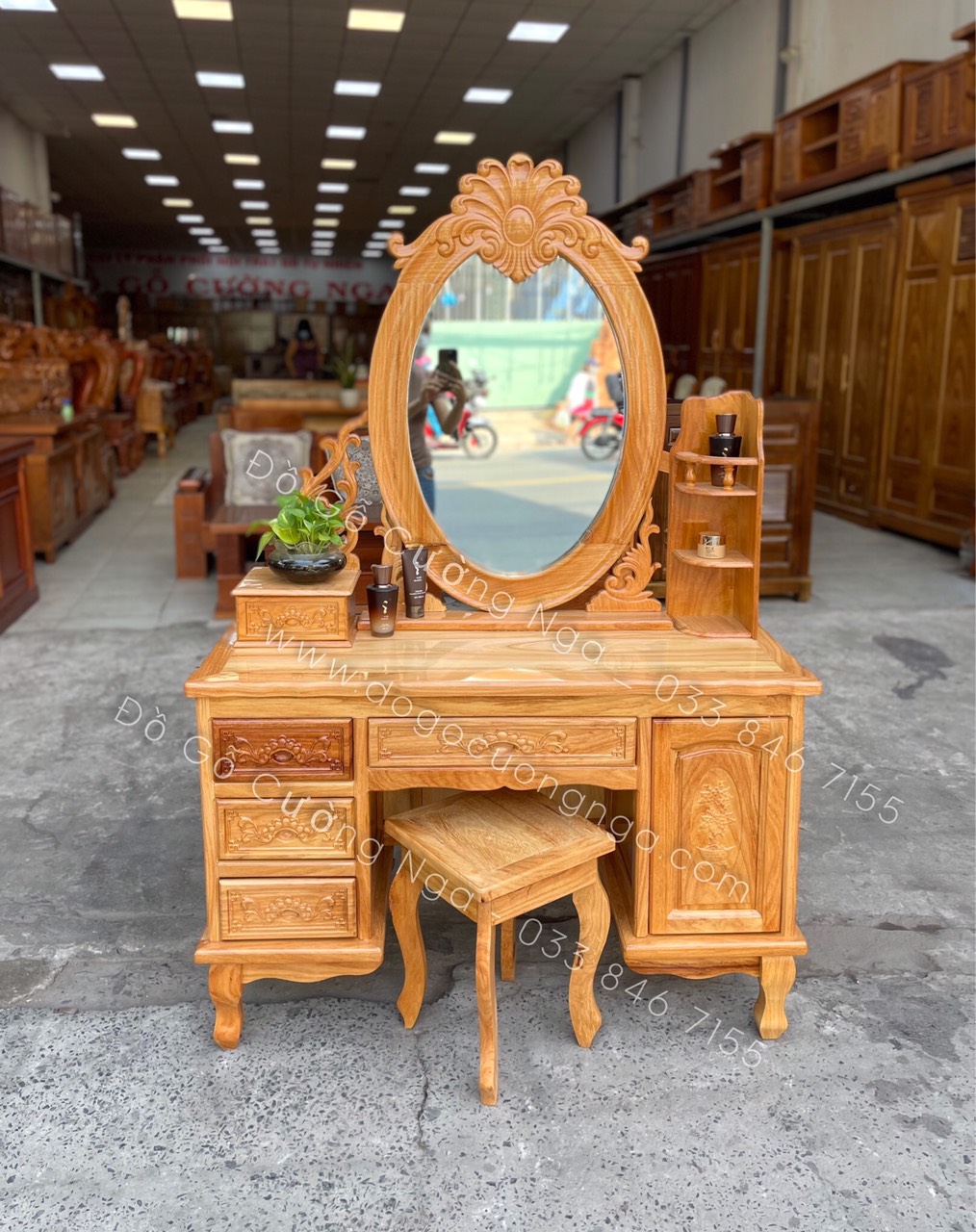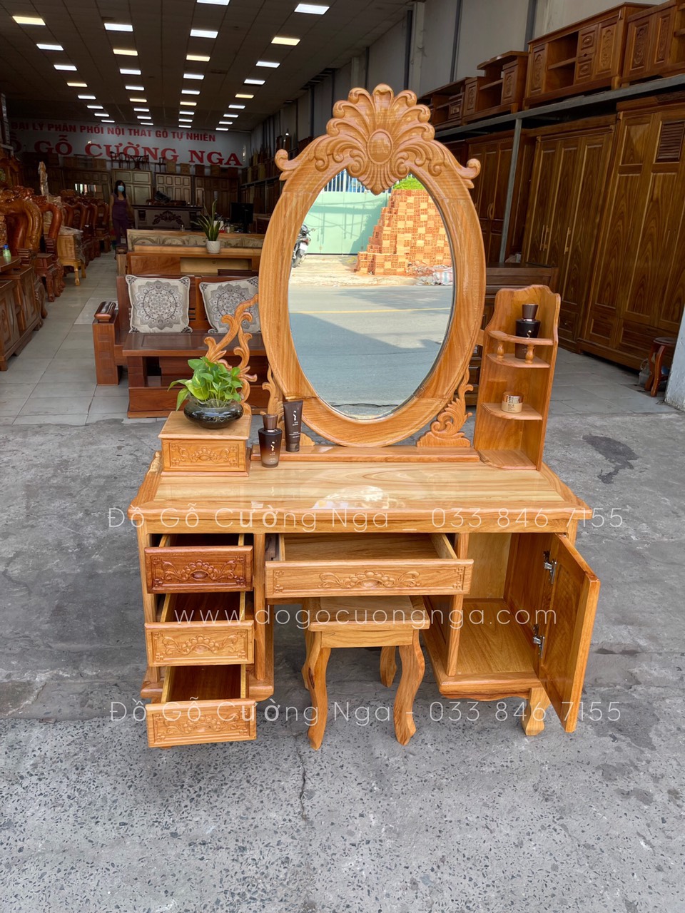 Video thực tế mẫu bàn trang điểm gỗ gõ đỏ