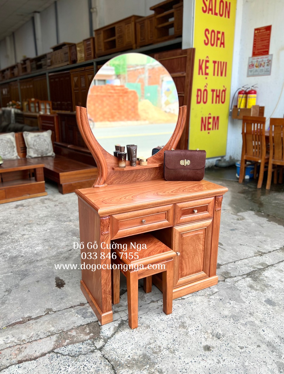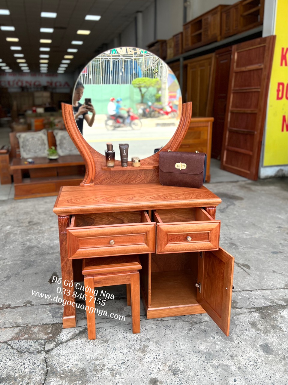 Bàn Trang Điểm Gỗ Hương Đá Gương Tròn Cao Cấp TĐ 014