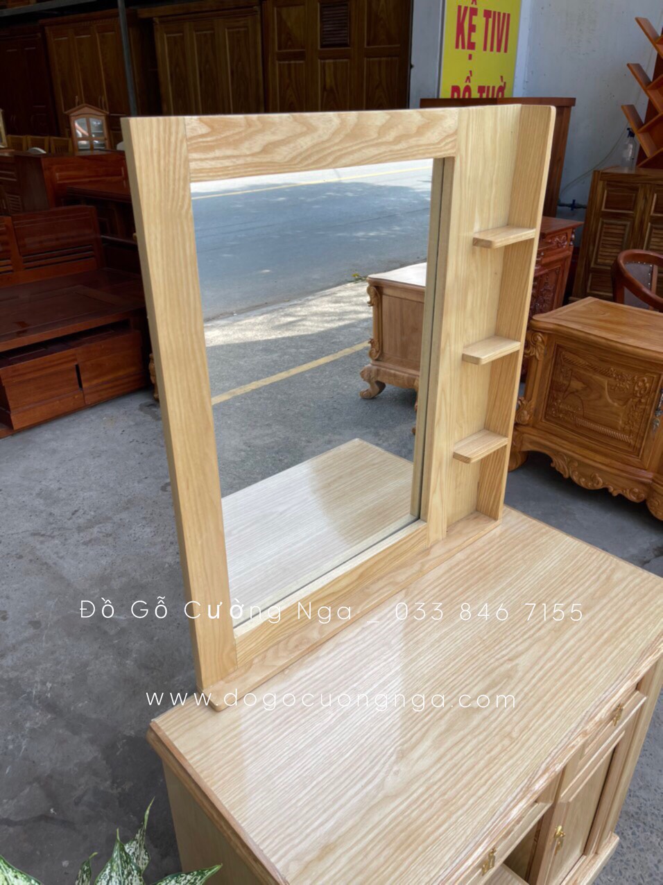 Video thực tế mẫu bàn trang điểm gỗ sồi nga giá rẻ