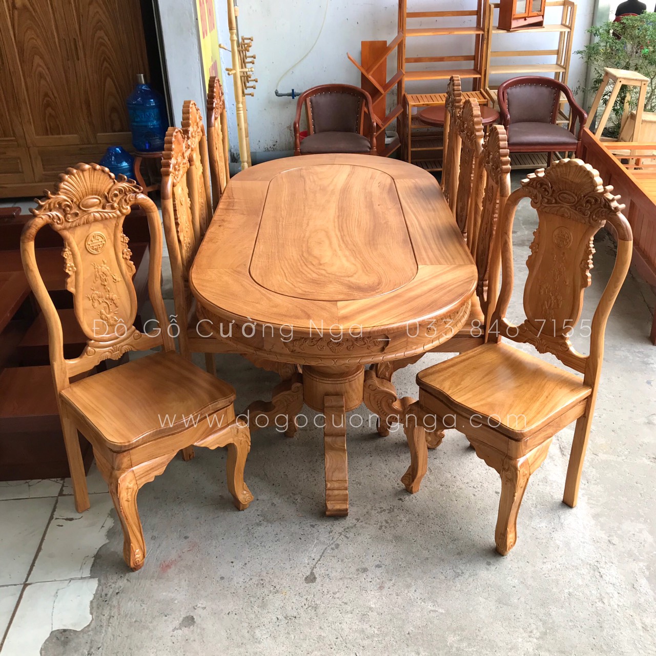 Bộ Bàn Ăn Gỗ Gõ Đỏ Cao Cấp 8 Ghế Mẫu Ovan Đẹp Đẳng Cấp