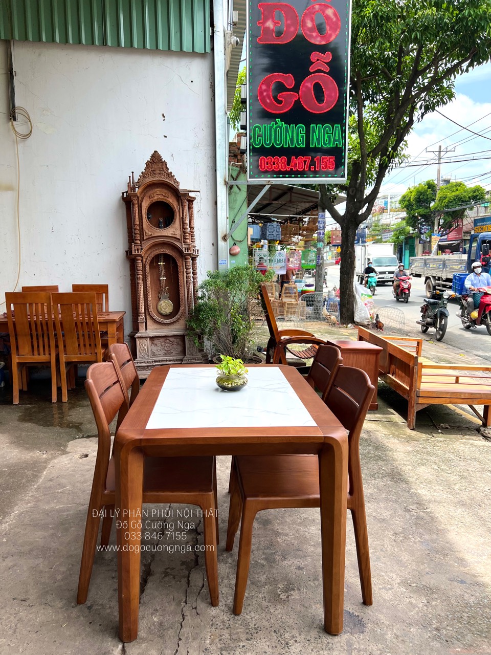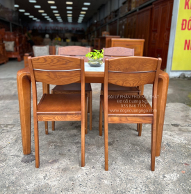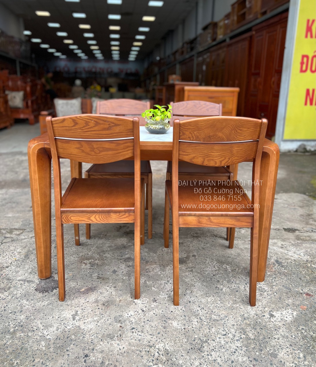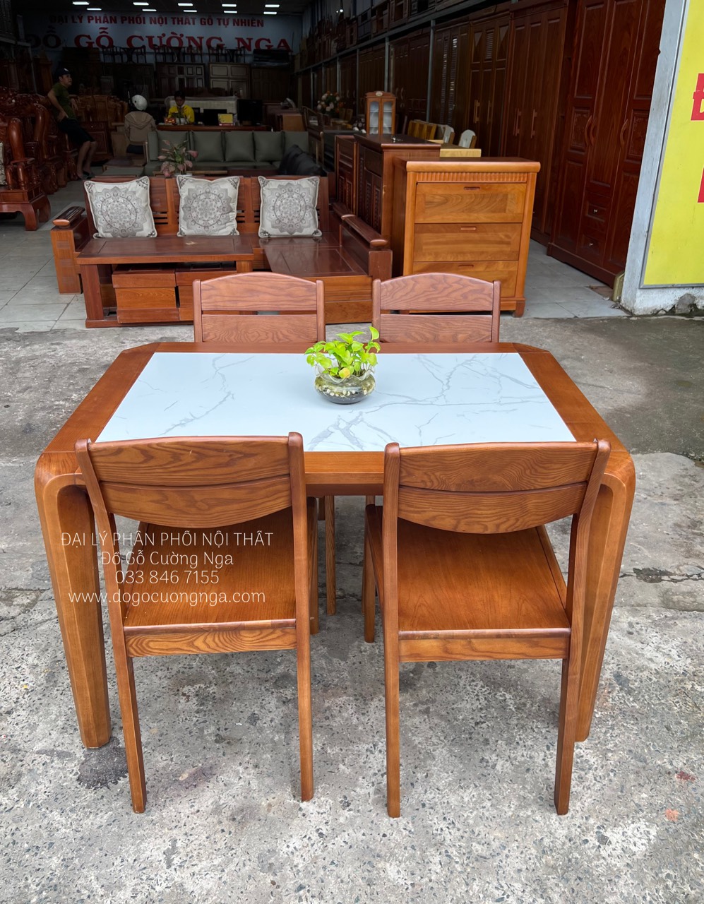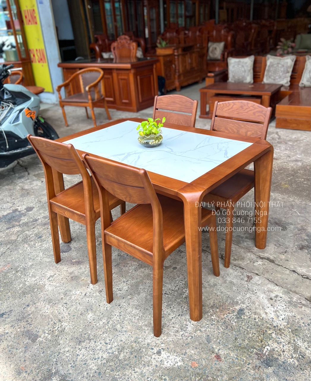 Bộ bàn ăn 4 ghế gỗ Sồi Nga mặt đá hiện đại