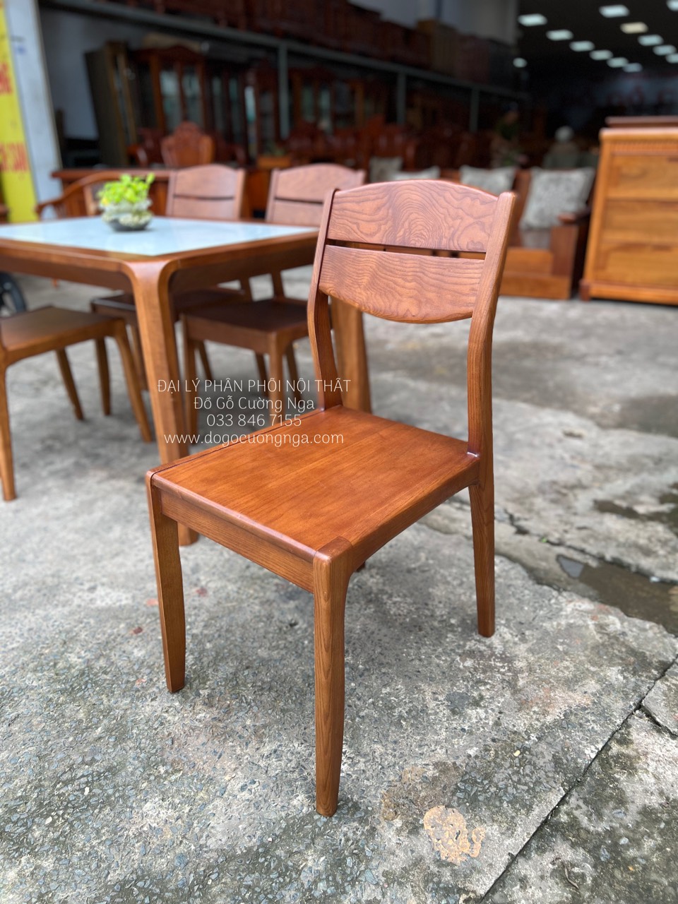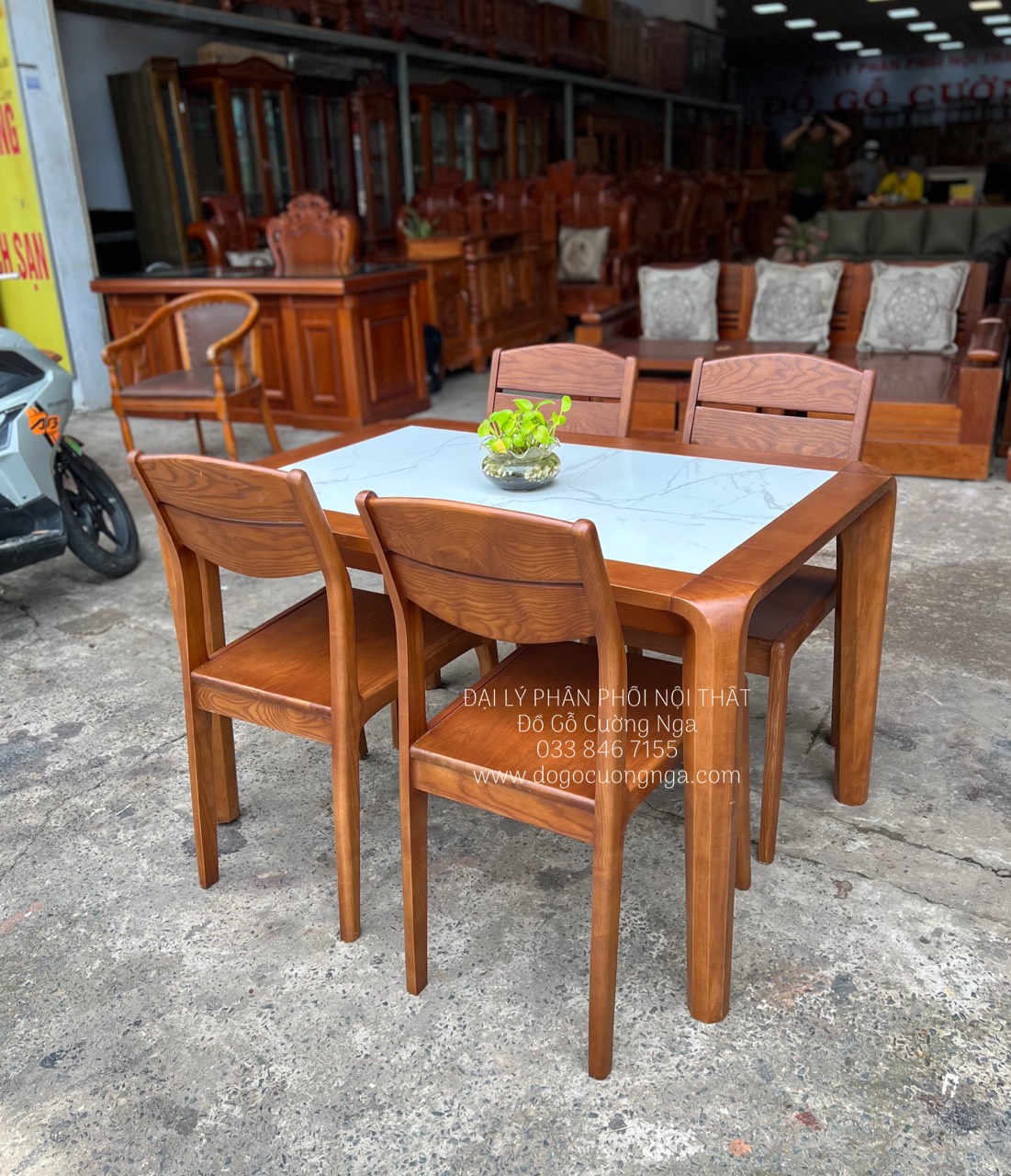 Bọ Bàn Ăn Gỗ Sồi Nga 4 Ghế Mặt Đá - Lau Màu Óc Chó Hiện Đại
