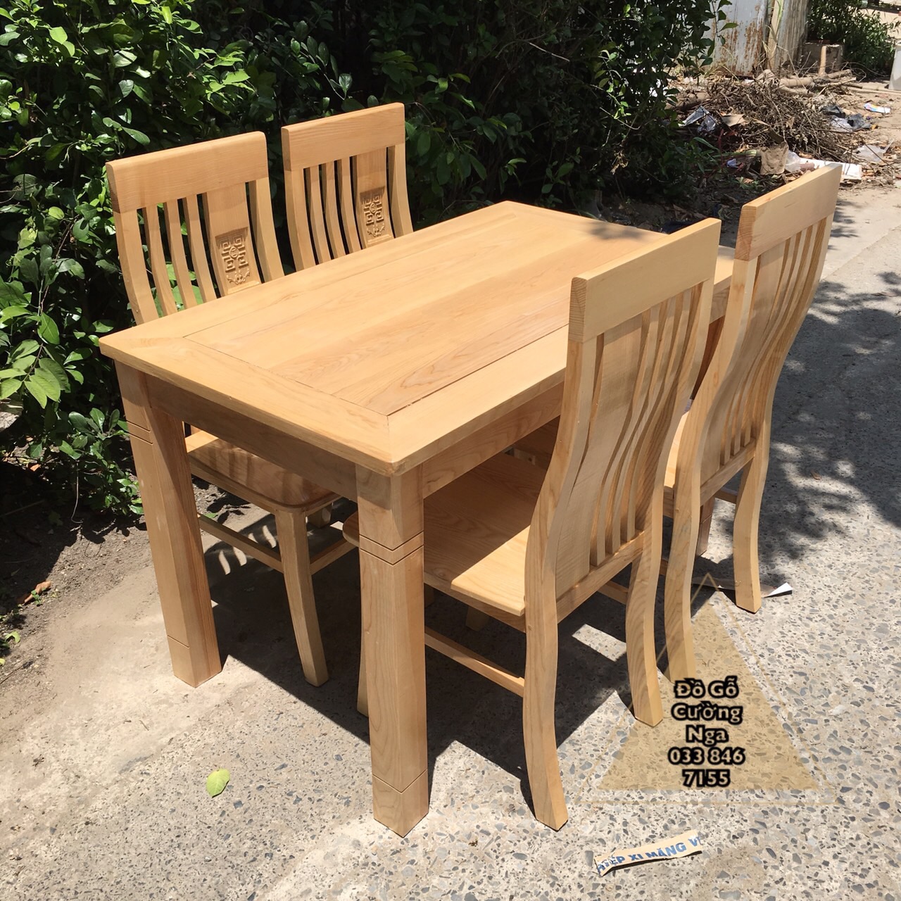 Bộ bàn ăn gỗ sồi nga 4 ghế mặt liền - 1m2 BS 04