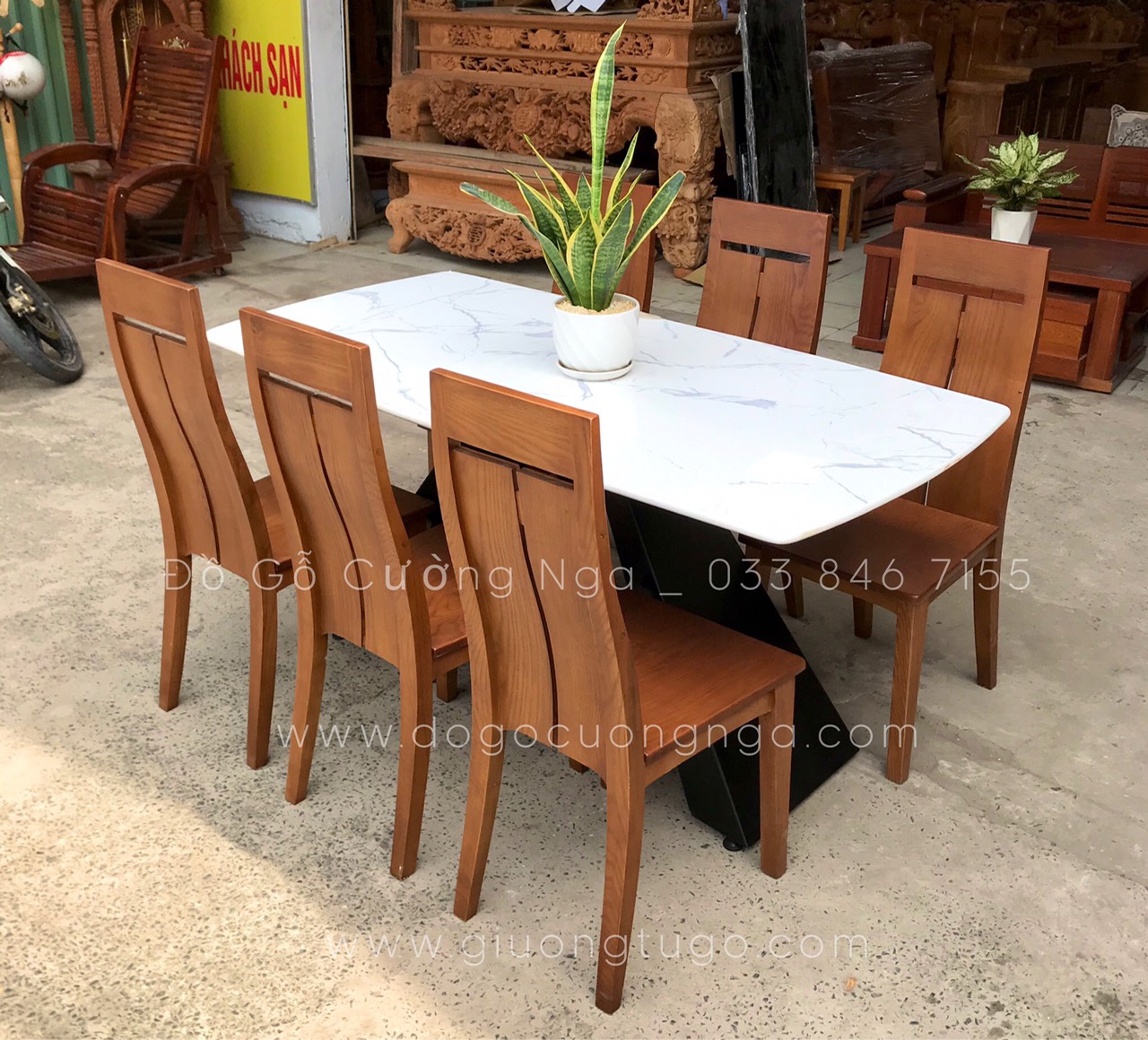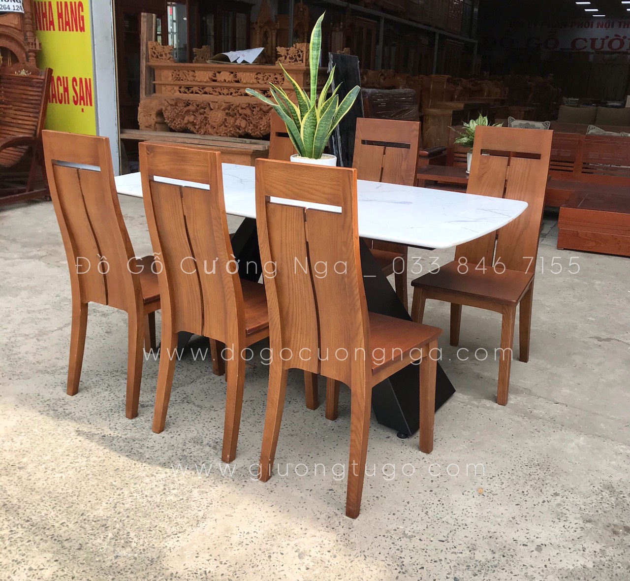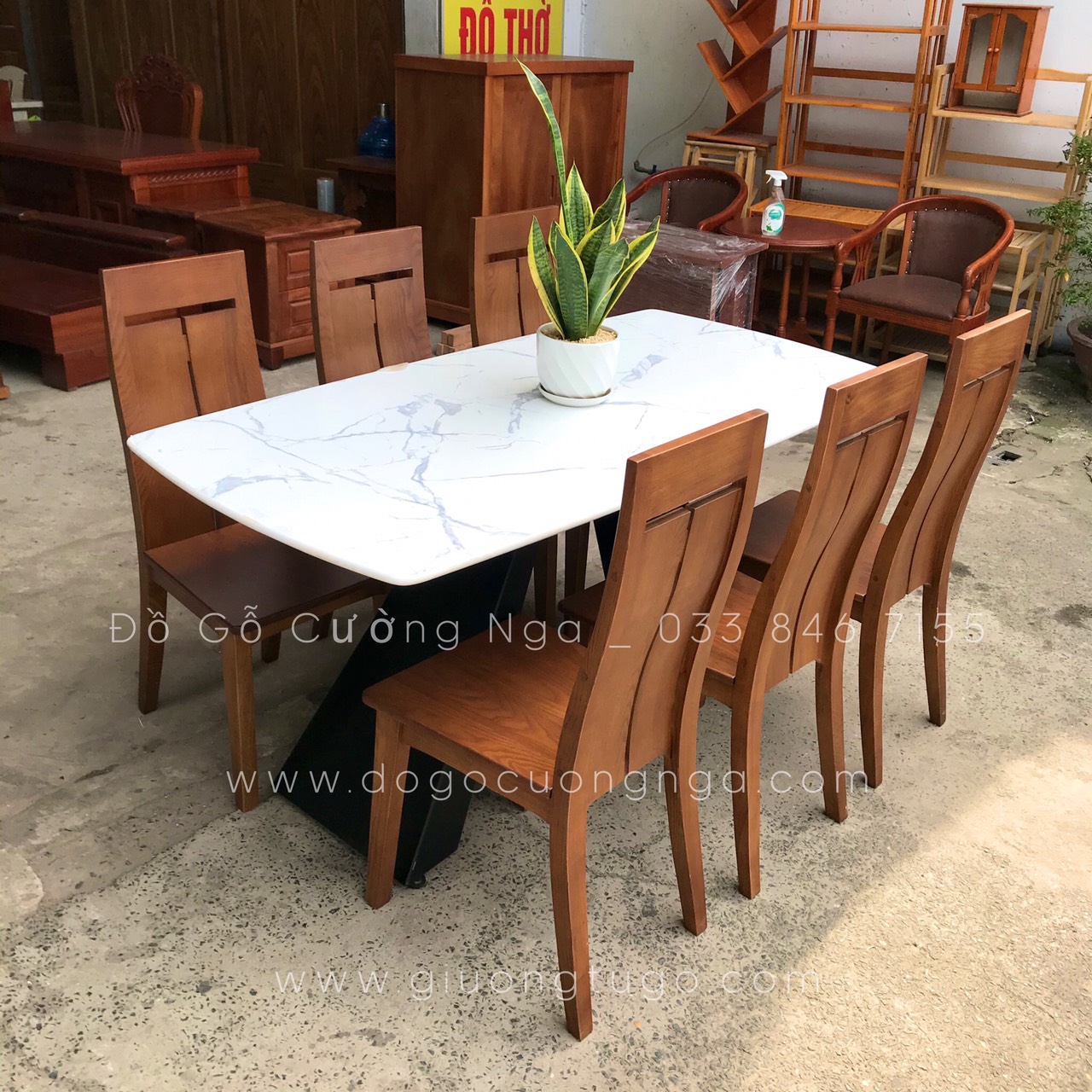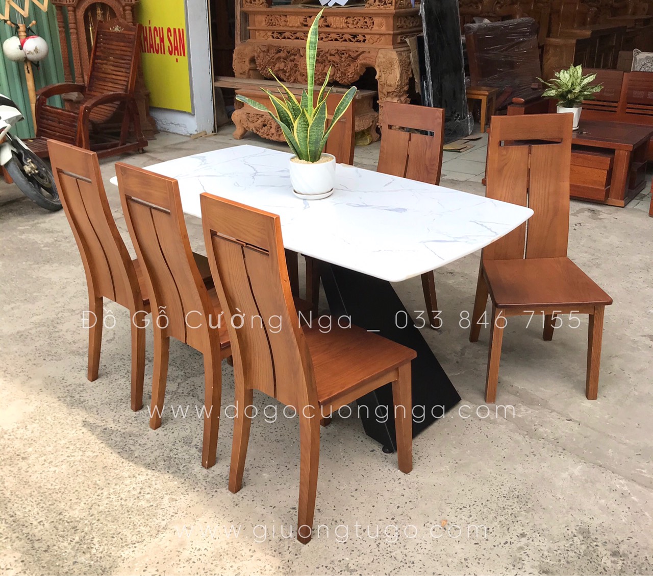 Bộ bàn ăn gỗ sồi nga 6 ghế - mặt đá cao cấp - hiện đại