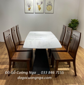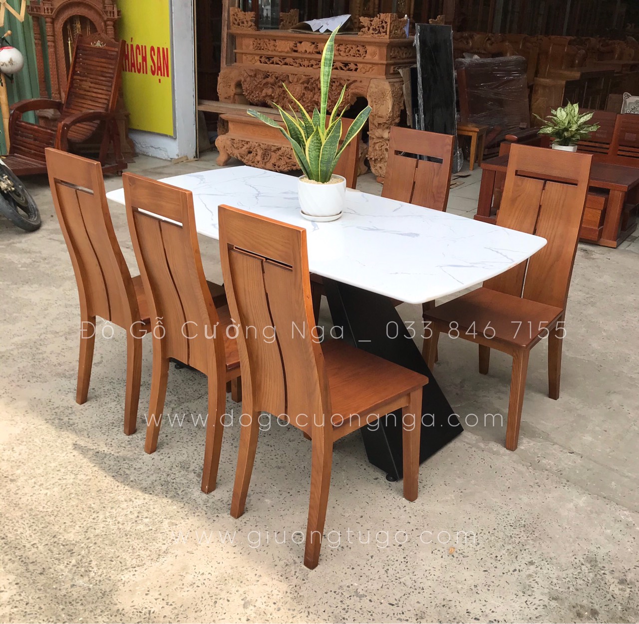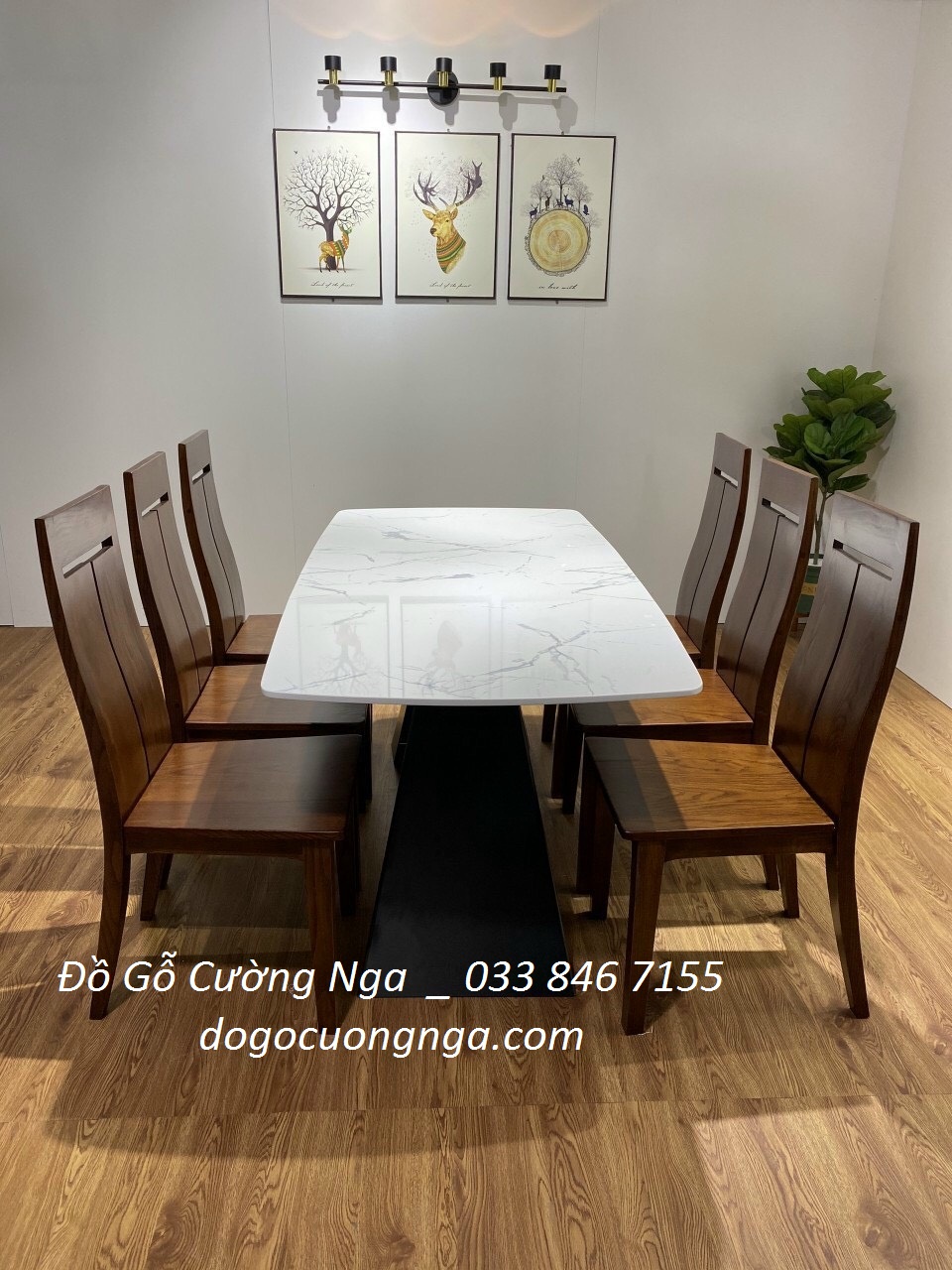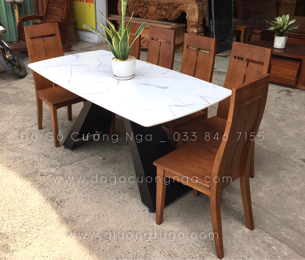 Bộ bàn ăn gỗ sồi nga 6 ghế - mặt đá cao cấp - hiện đại