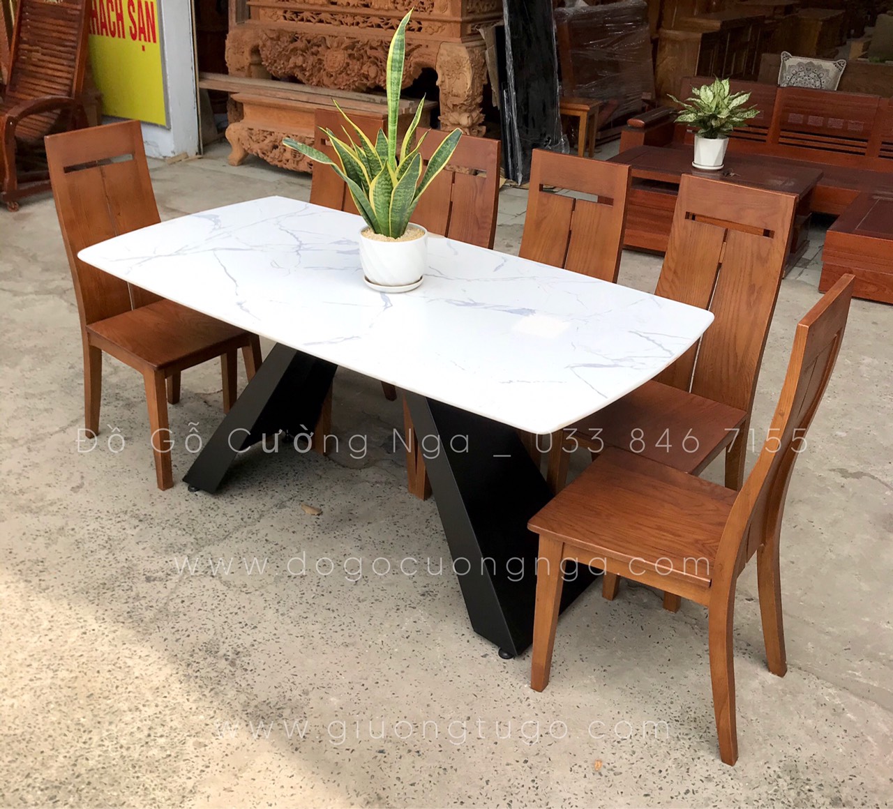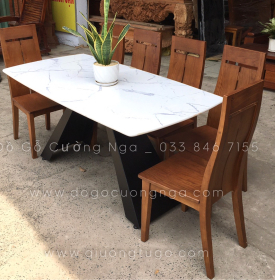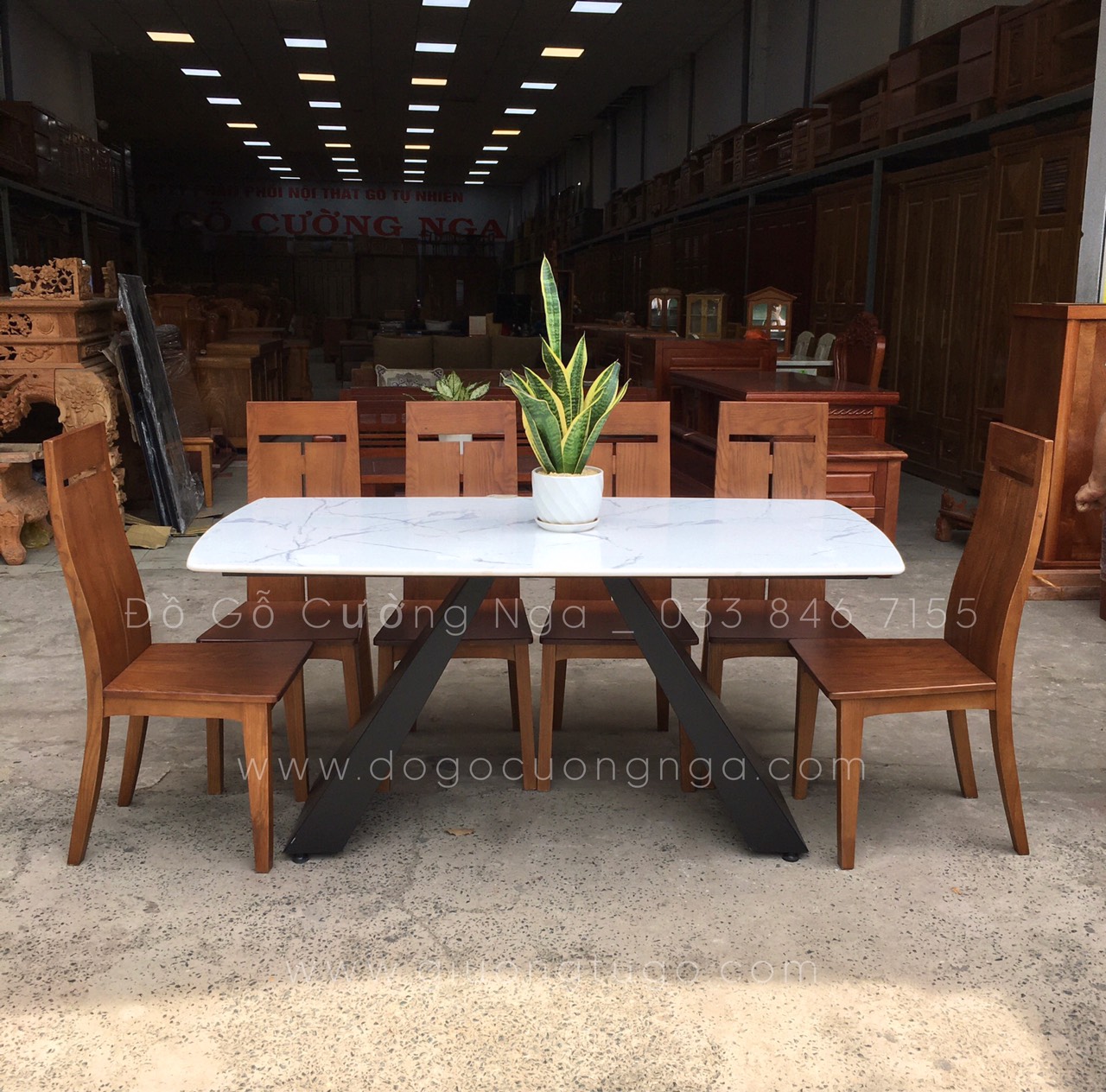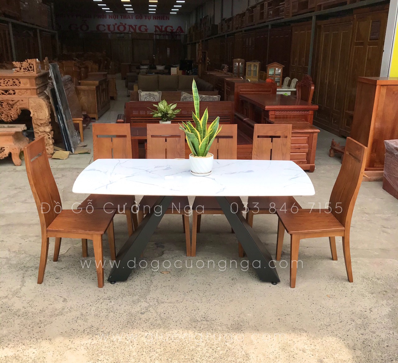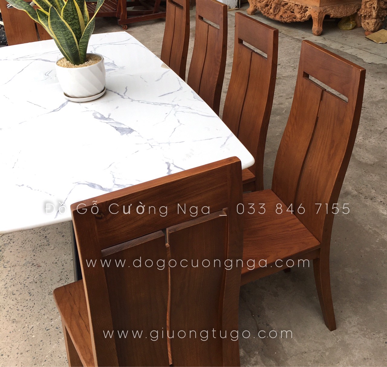 Bộ bàn ăn gỗ sồi nga 6 ghế - mặt đá cao cấp - hiện đại