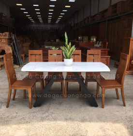 Bộ bàn ăn 6 ghế gỗ Sồi Nga mặt đá BG 055