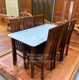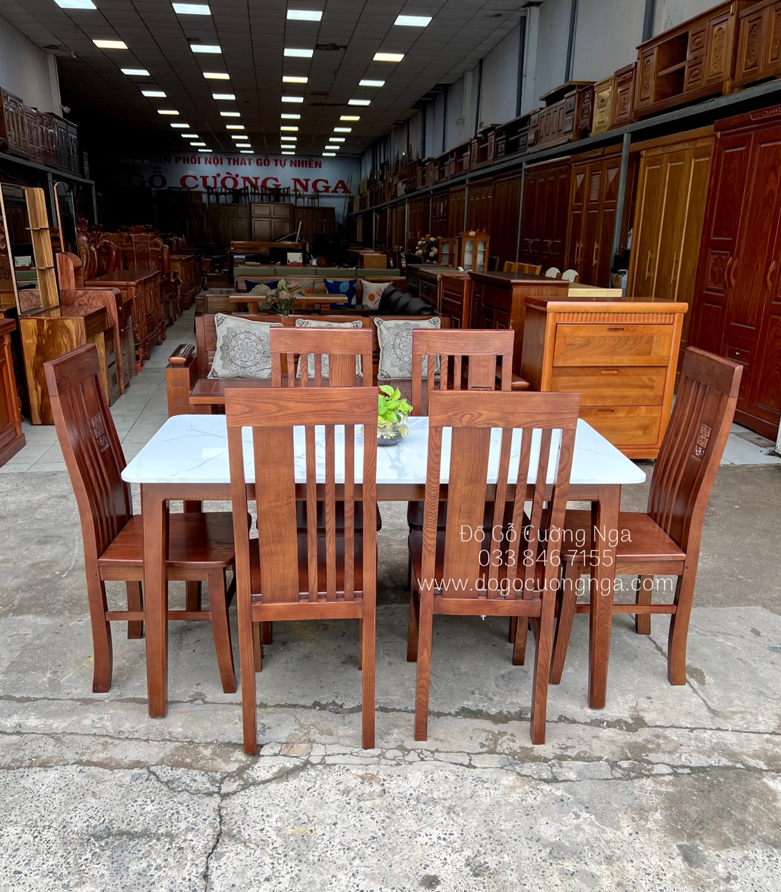 Bộ bàn ăn 6 ghế gỗ Sồi Nga mặt đá BG 059