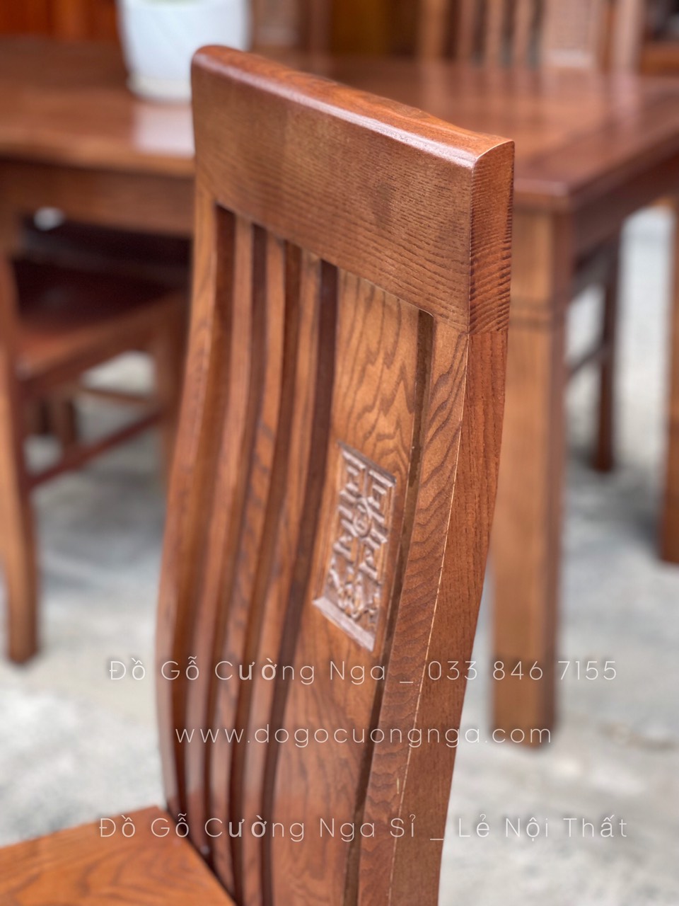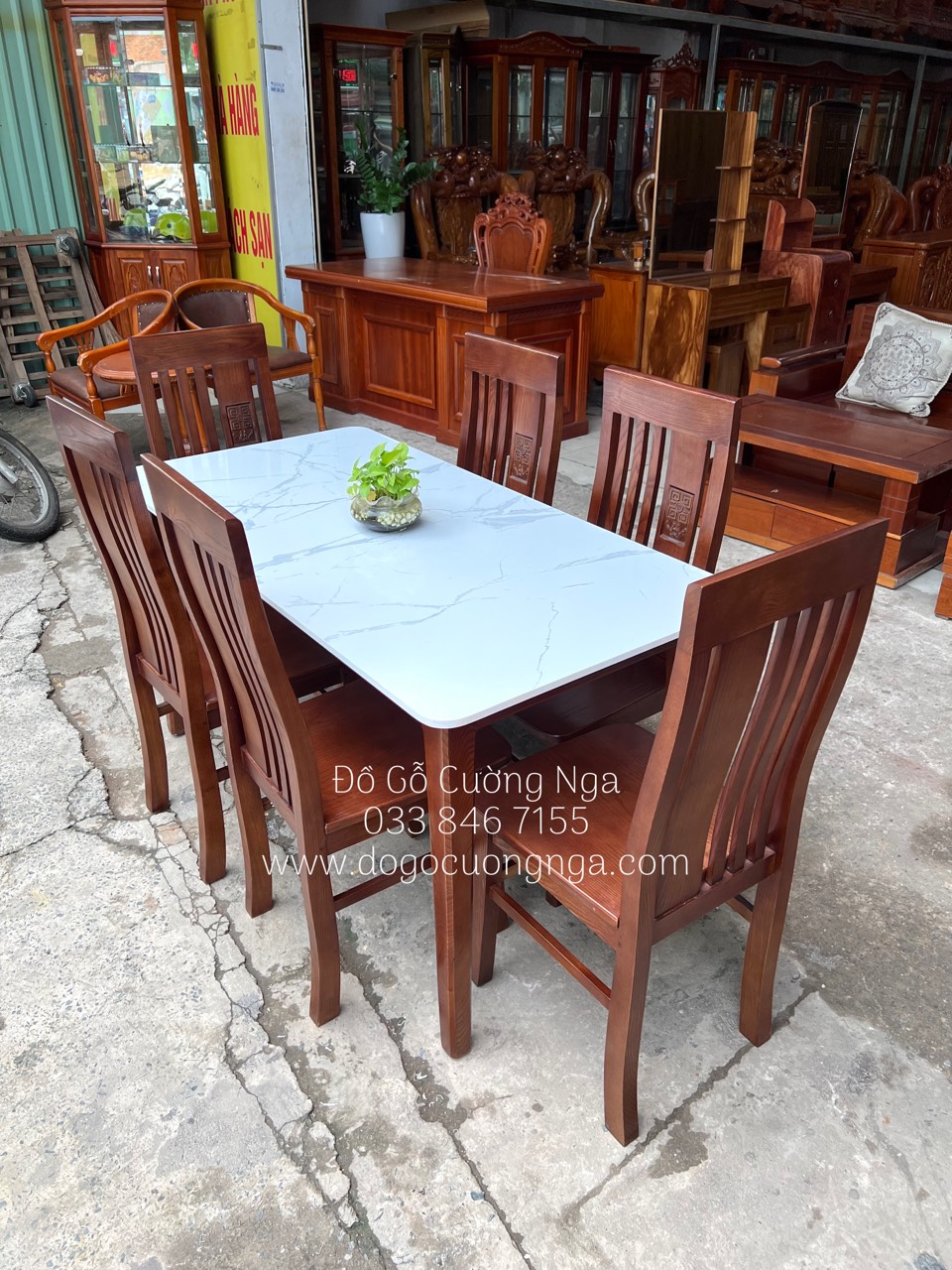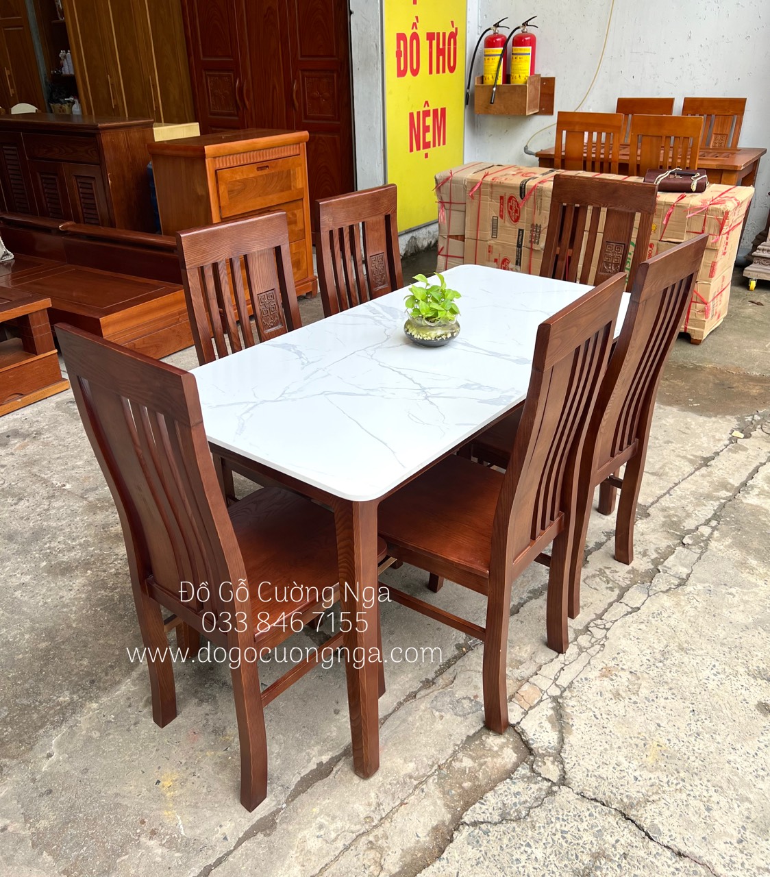 Chi Tiết Bàn Ăn Mặt Đá 6 Ghế Gỗ Sồi Lau Màu Óc Chó