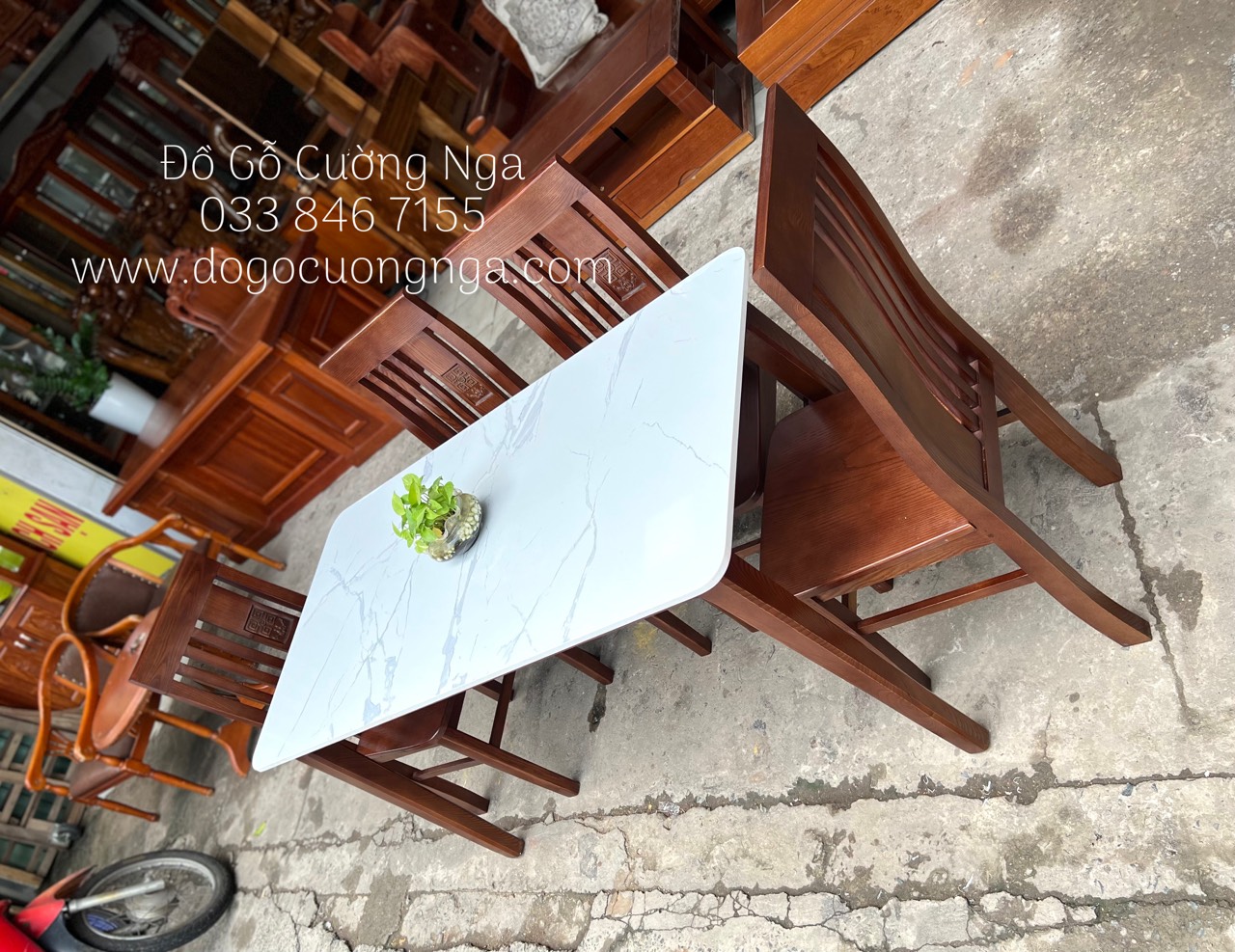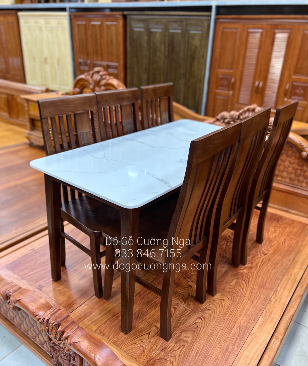 Bộ bàn ăn gỗ sồi nga 6 ghế - mặt đá - màu óc chó giá rẻ