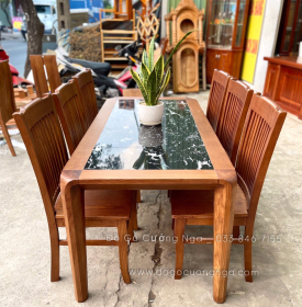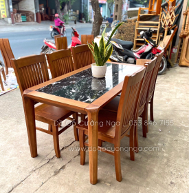 Bộ bàn ăn 6 ghế gỗ Sồi Nga mặt đá BG 060