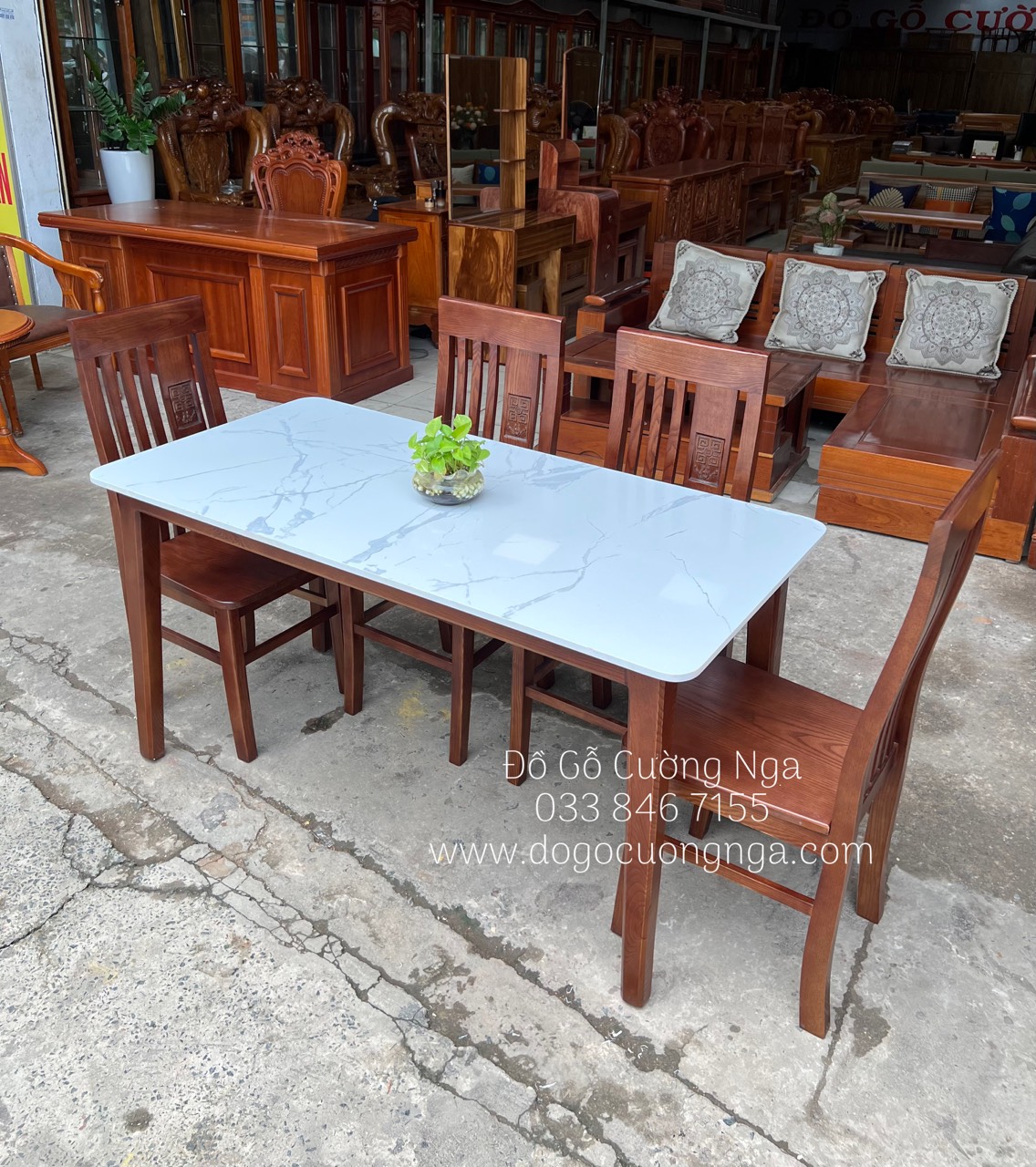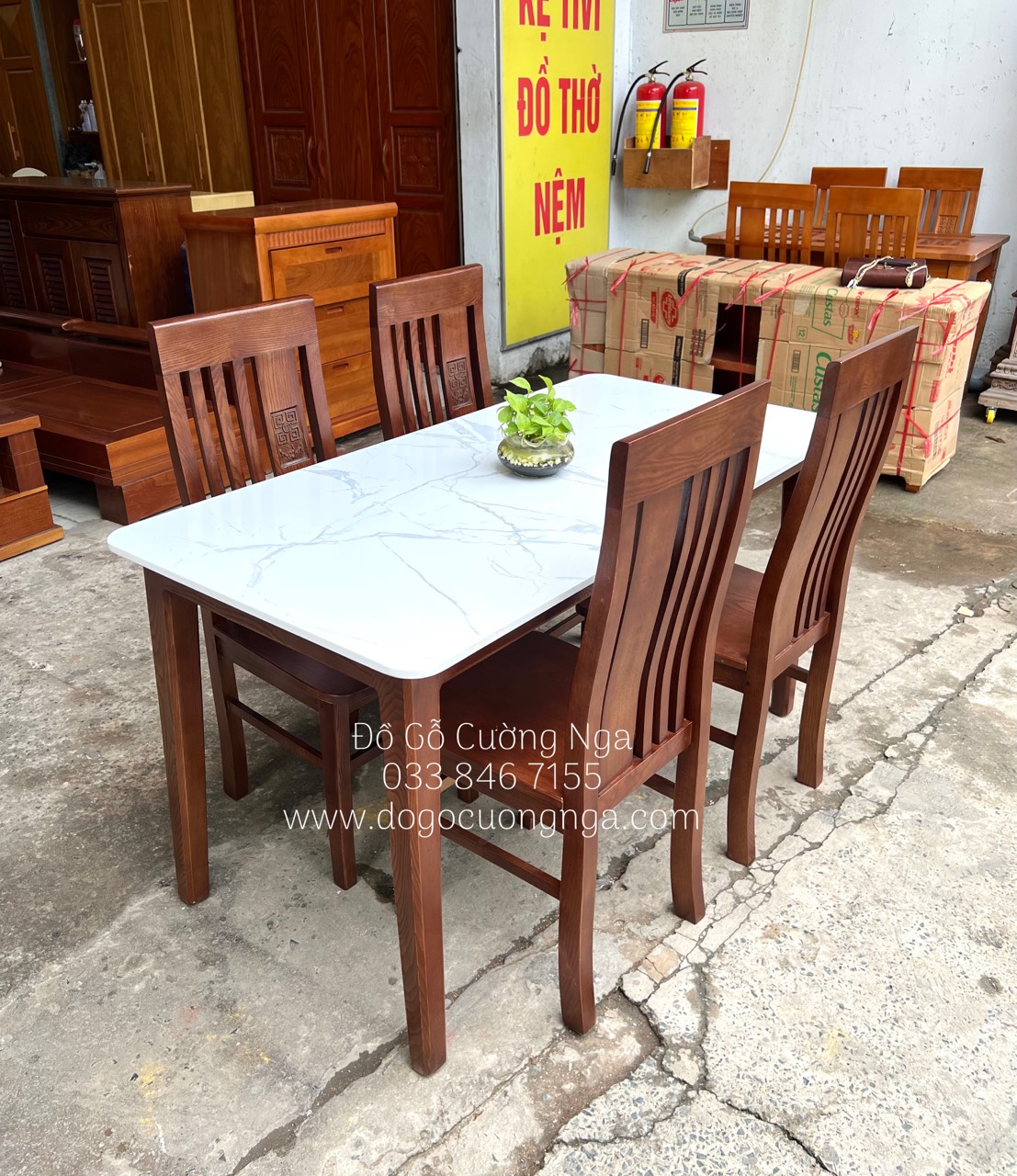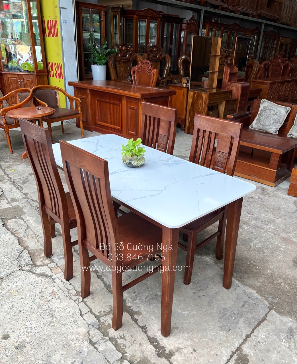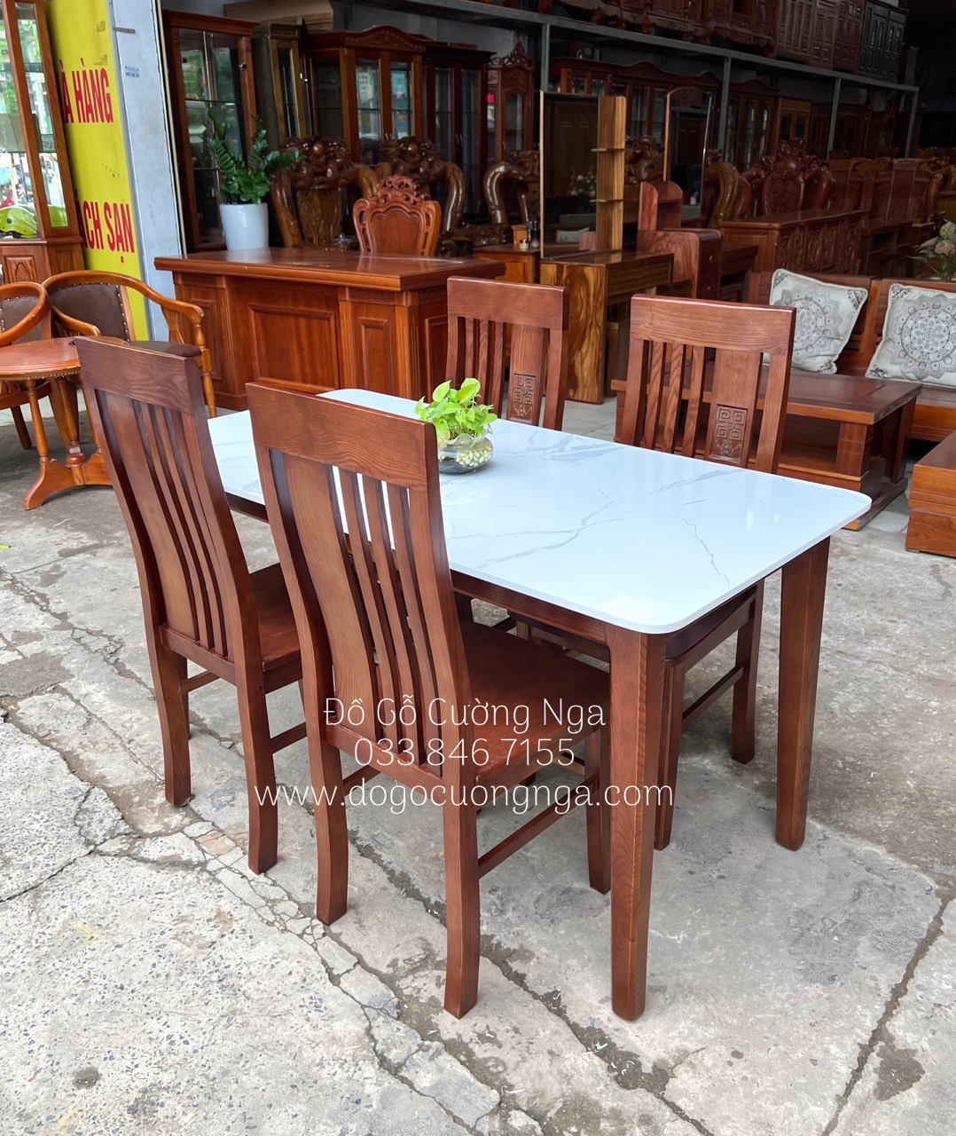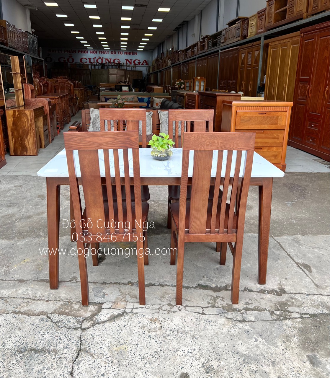 Bàn ăn gỗ sồi nga mặt đá - 4 ghế hiện đại