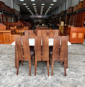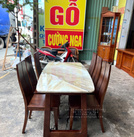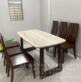 Bộ Bàn Ăn Gỗ Sồi Nga Mặt Đá 6 Ghế Hiện Đại
