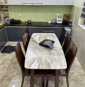 Bàn ăn gỗ sồi nga mặt đá cao cấp
