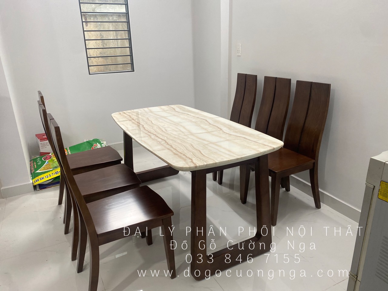 - Dài 1m6 x Rộng 80cm x Cao 73 cm + 6 ghế