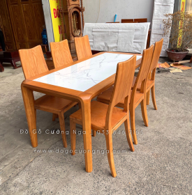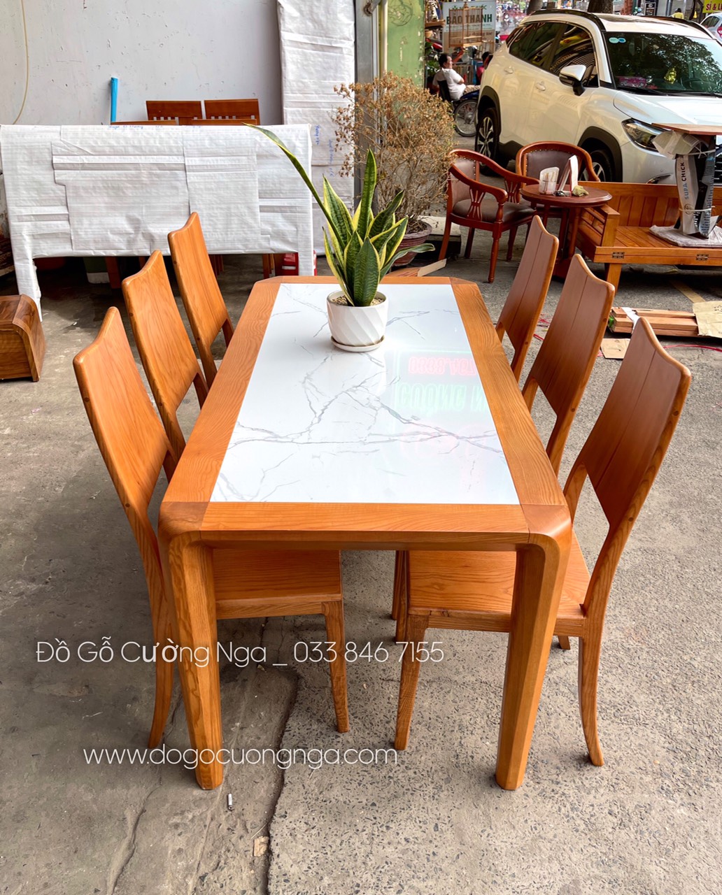 Bộ bàn ăn gỗ sồi nga mặt đá 6 ghế hiện đại