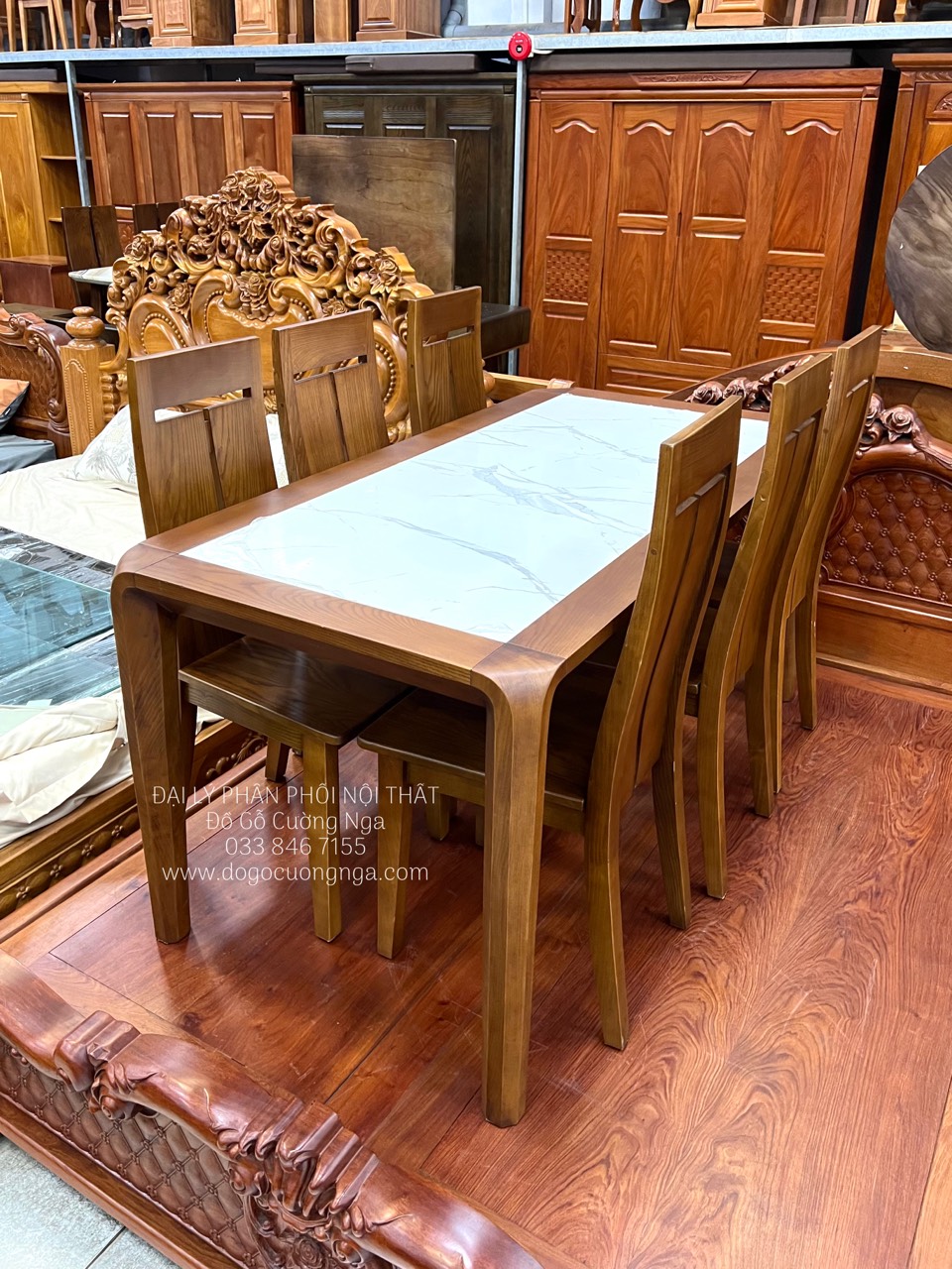Bộ bàn ăn 6 ghế gỗ Sồi Nga mặt đá BG 054