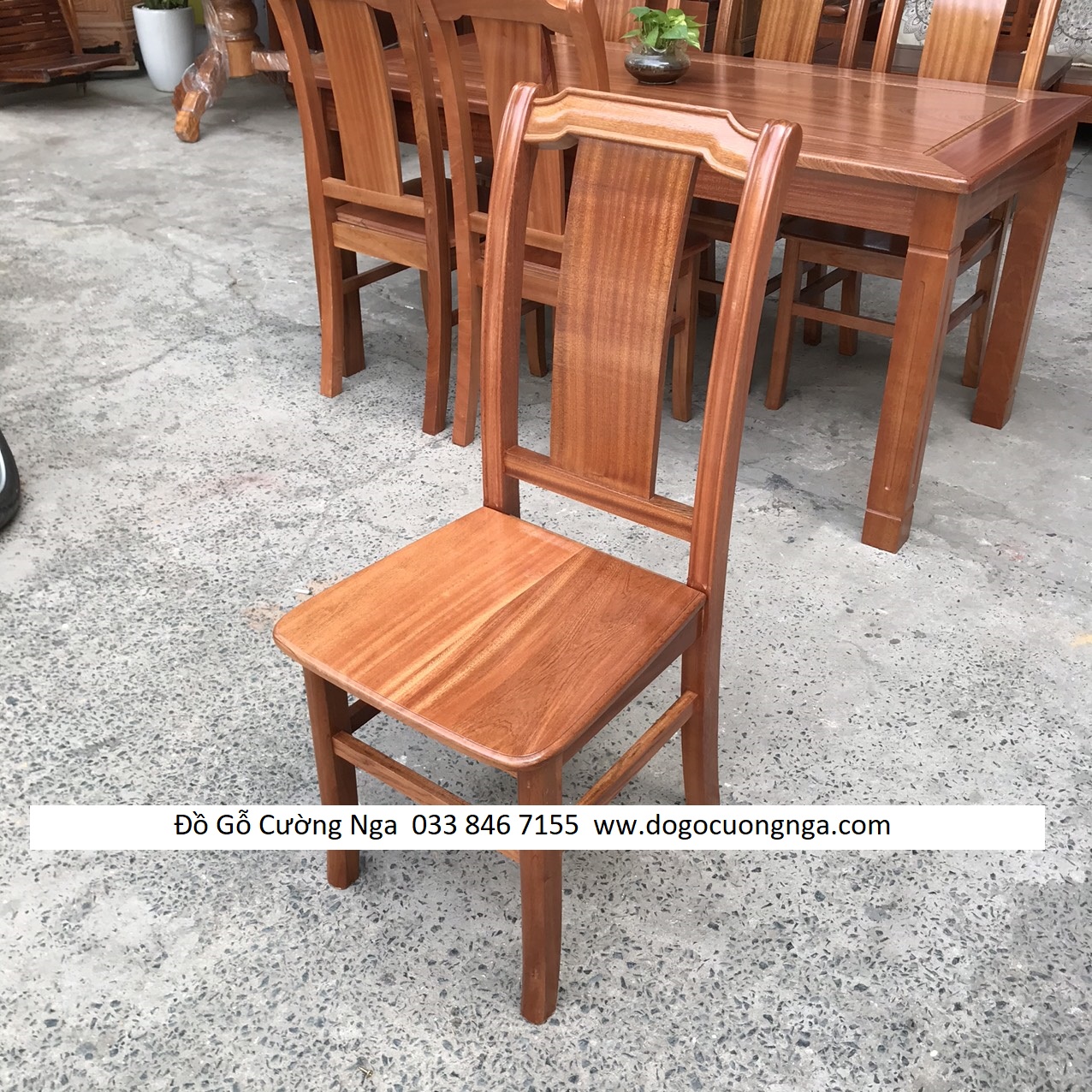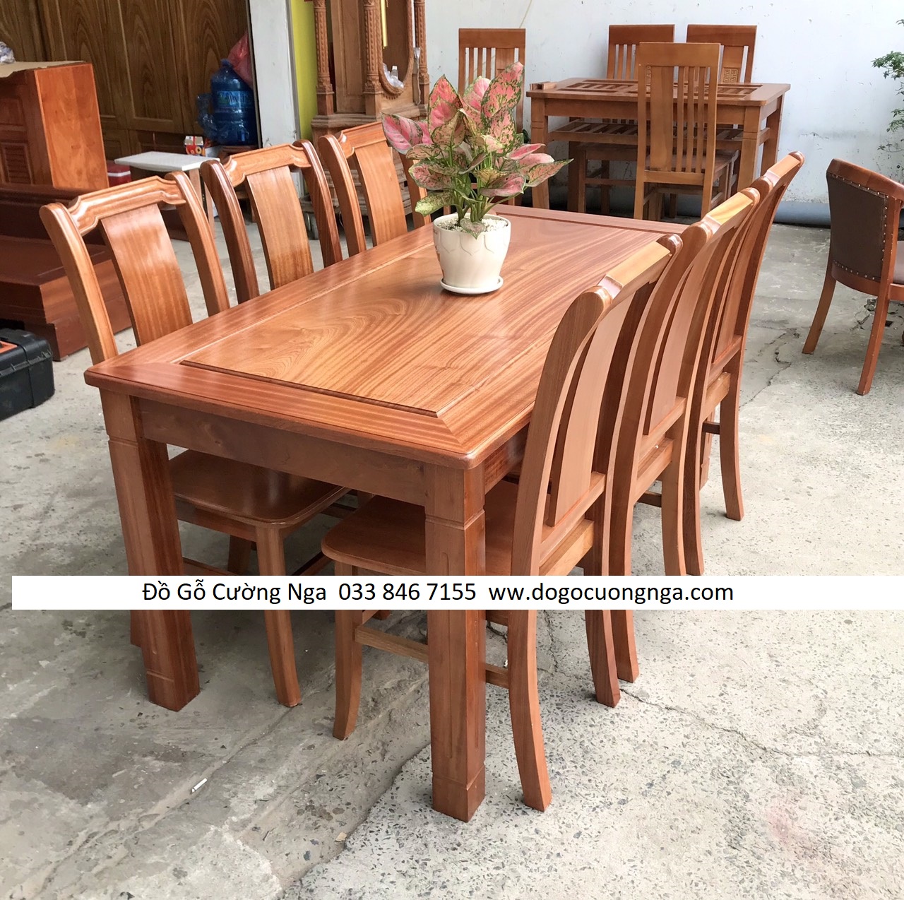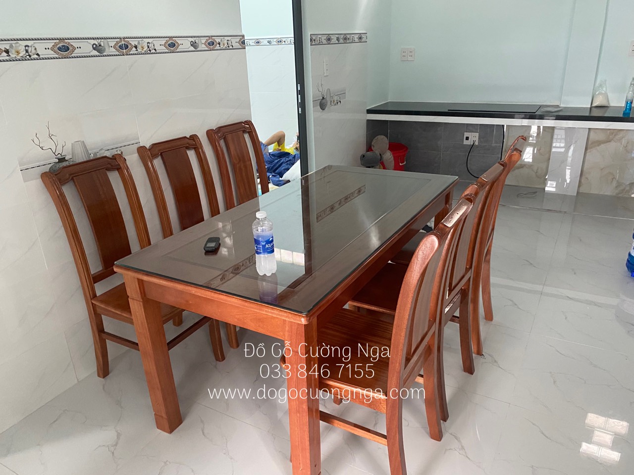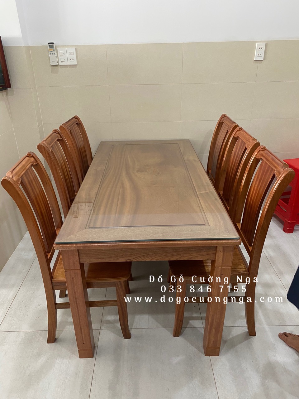 Bàn ăn gỗ xoan đào 6 ghế - mặt liền 6 ghế