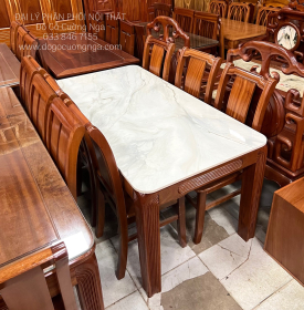 Bộ bàn ăn 6 ghế gỗ xoan đào mặt đá hiện đại