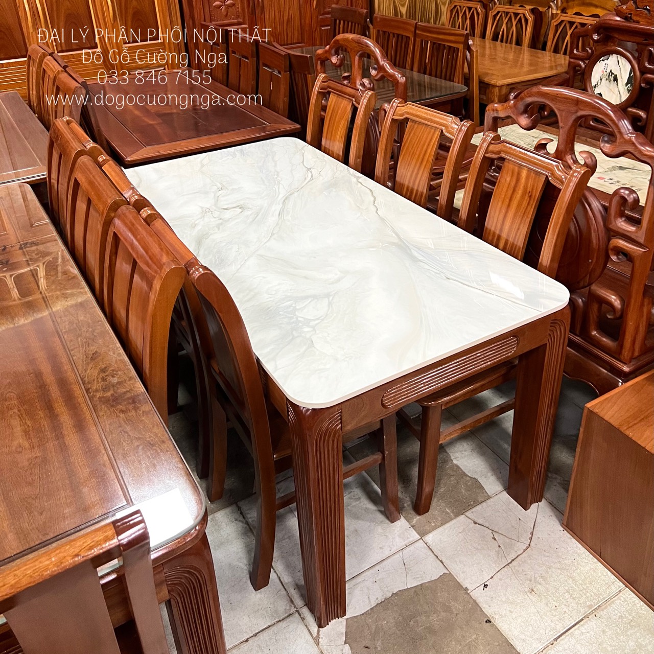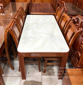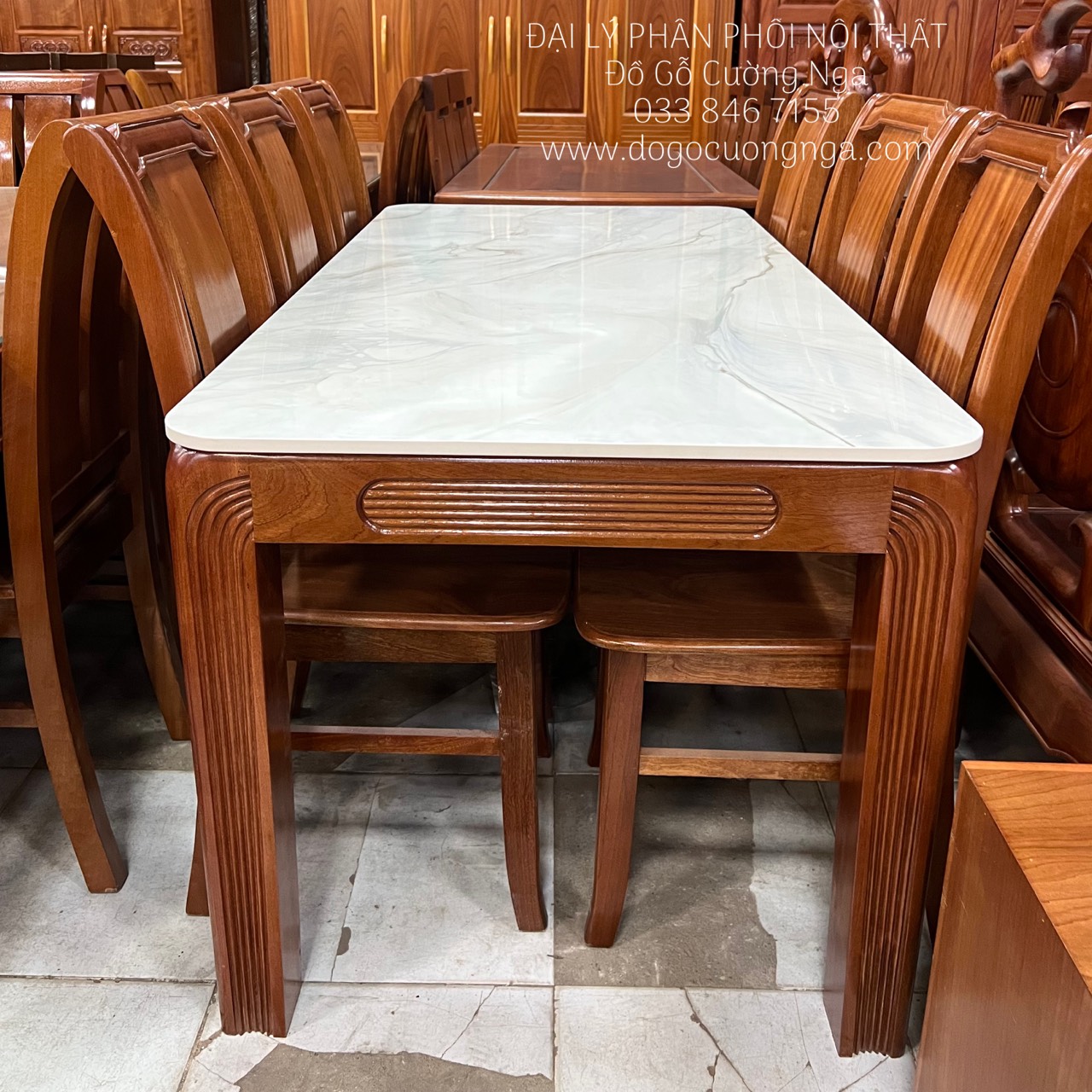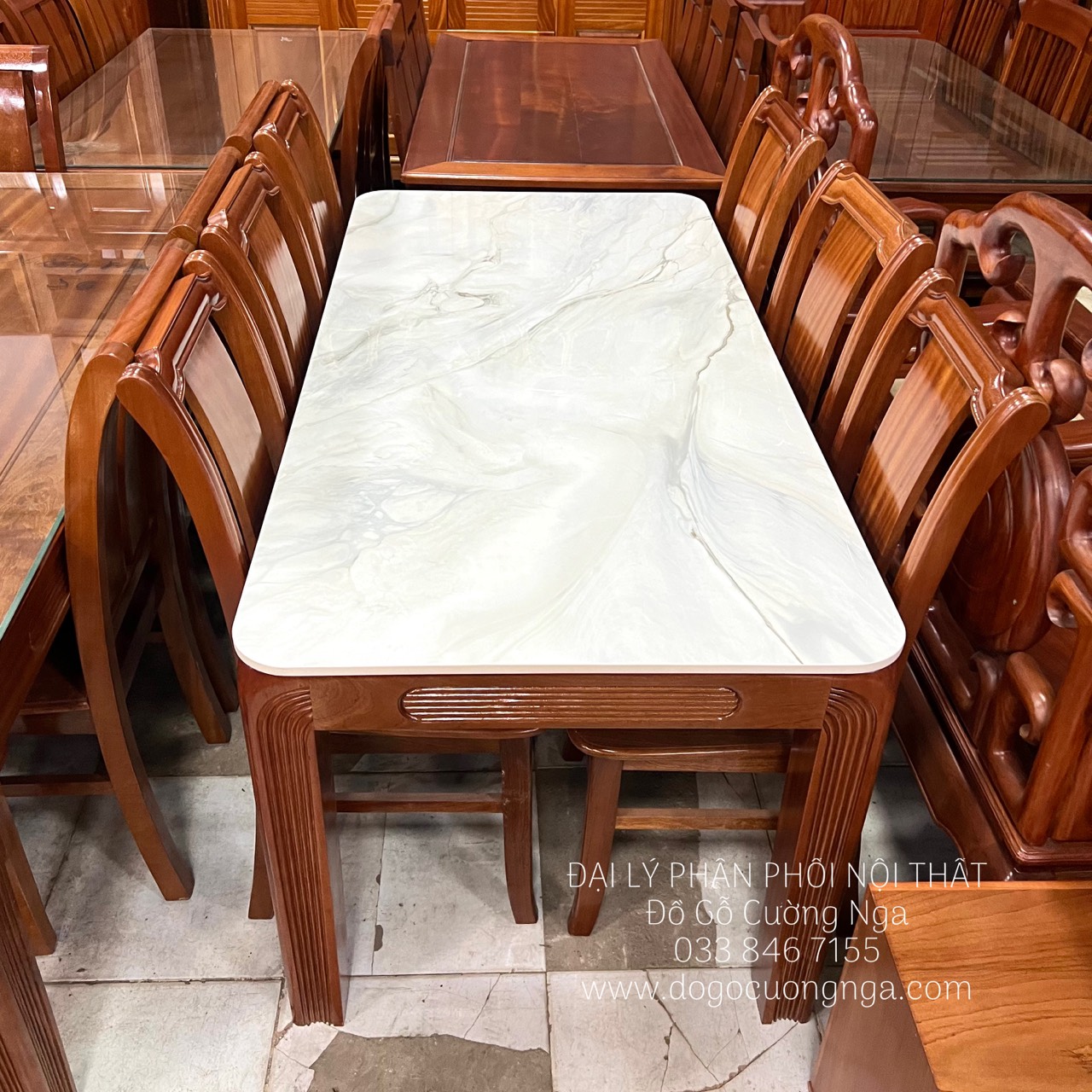 Bộ BÀn Ăn Gỗ Xoan Đào 6 Ghế Kết Hợp Mặt Đá Bền Đẹp Giá Rẻ