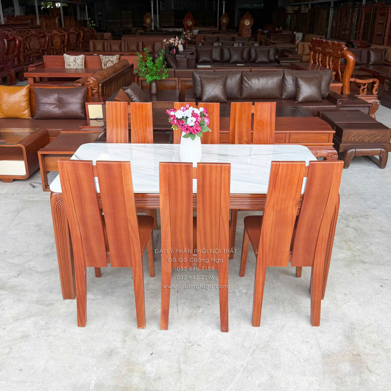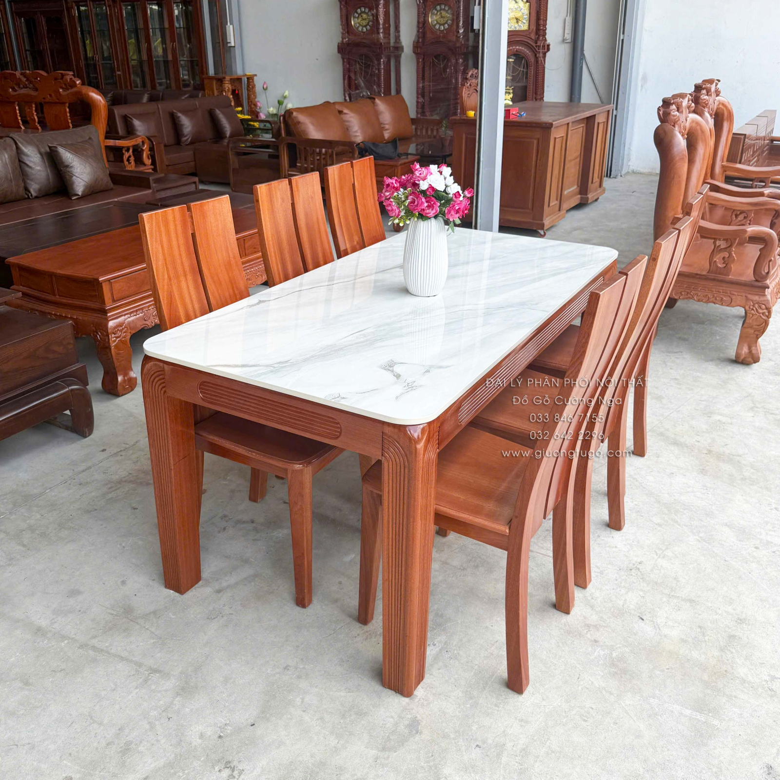 Bộ bàn ăn 6 ghế gỗ xoan đào mặt đá BG 035